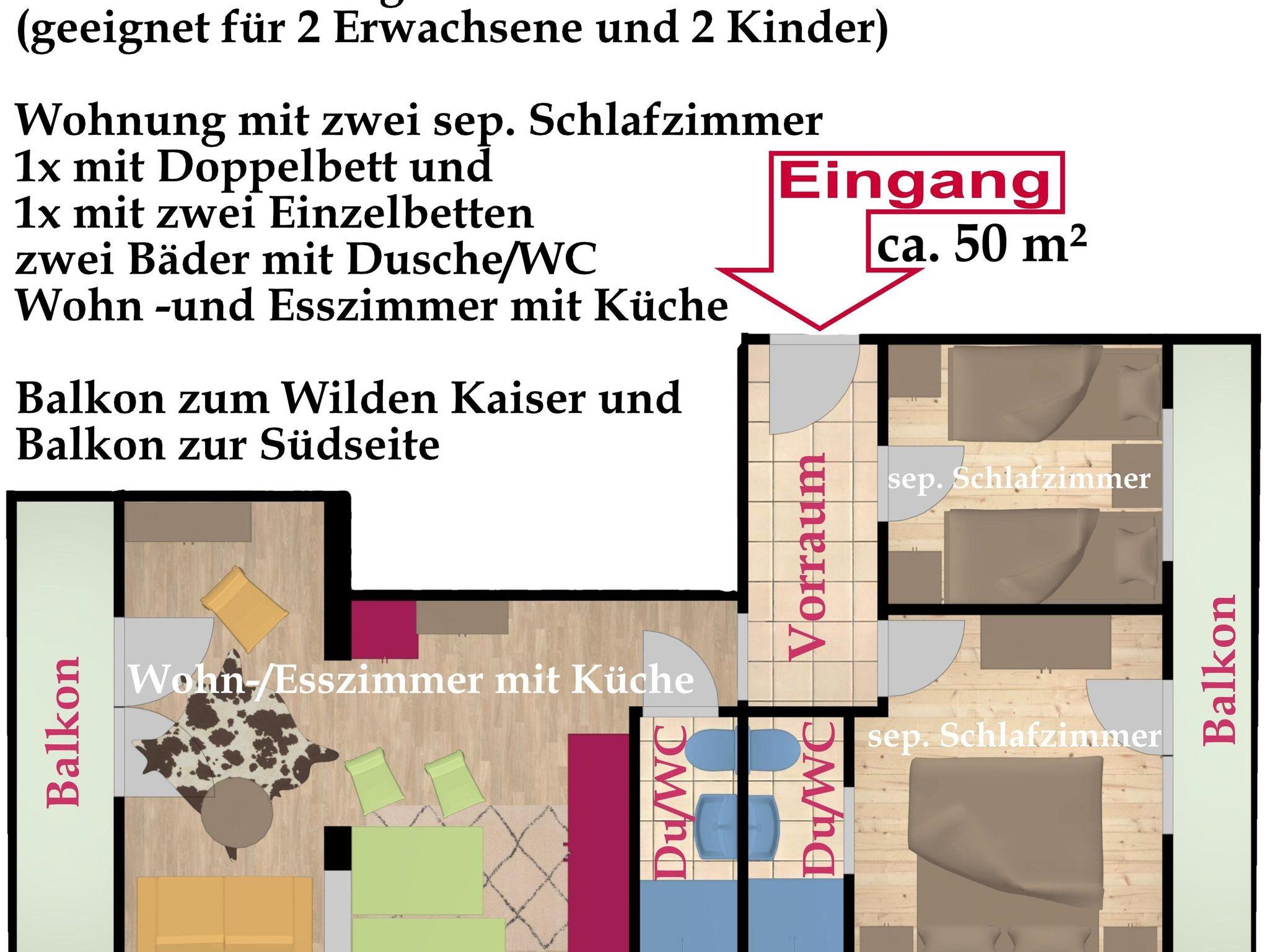 Die Ferienwohnung war super, herrlicher Ausblick zum Wilden Kaiser! Sehr gute Ausstattung. Die Angebote für Kinder und Erwachsene sind genial, es ist einfach nur schön in dieser Gegend! Wir kommen wieder!