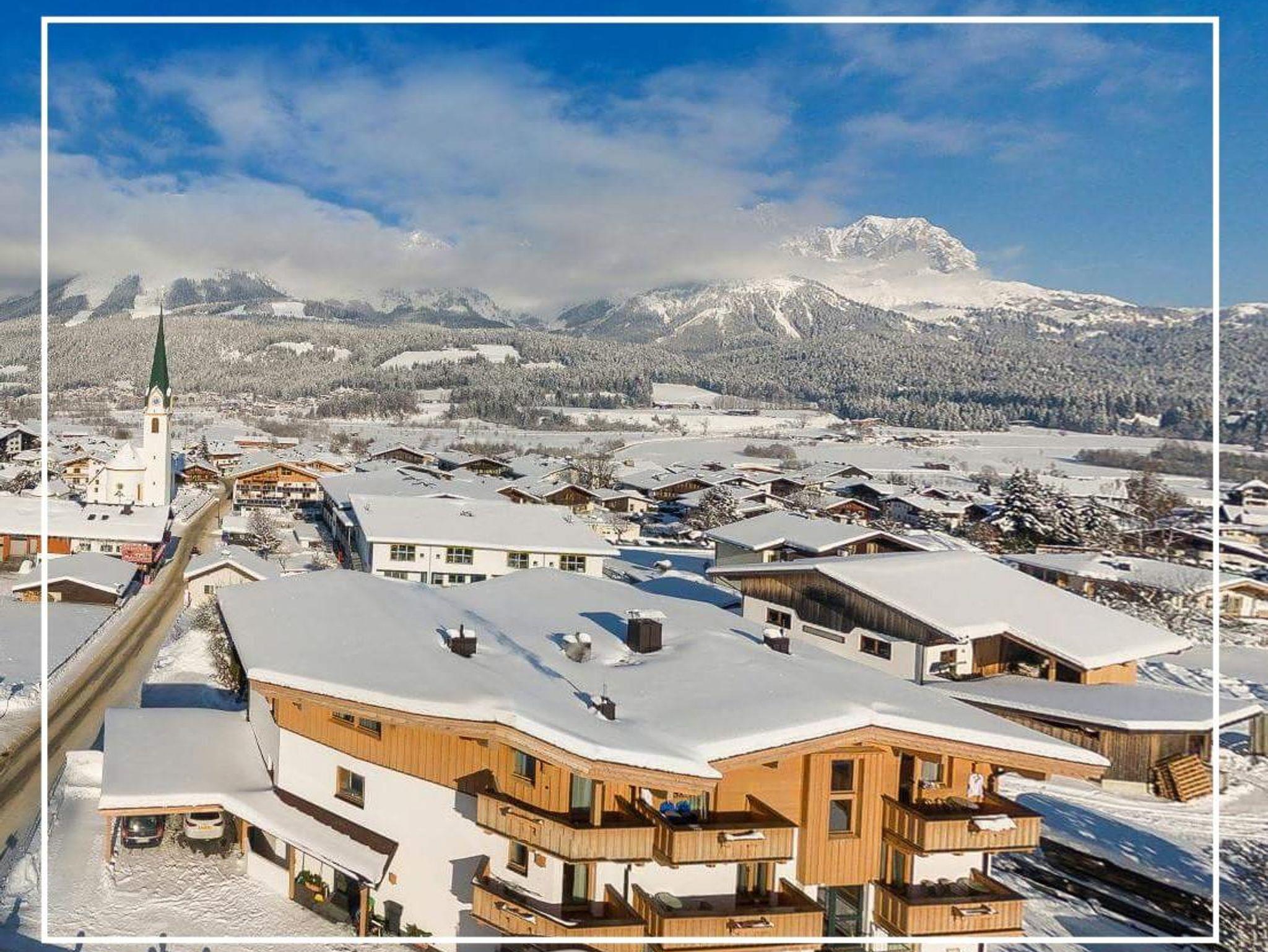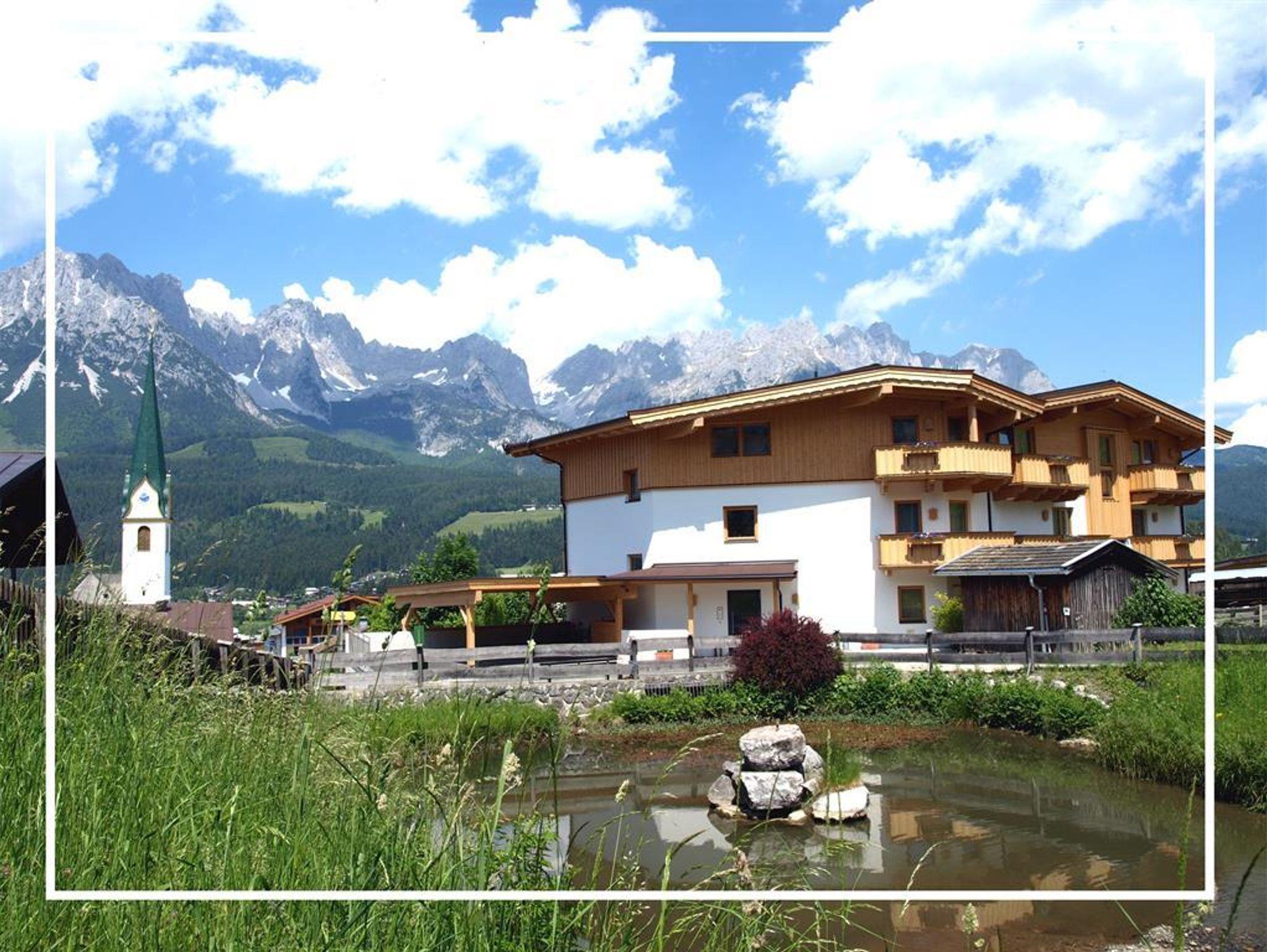 ....unser Appartementhaus befindet sich in zentraler Lage, direkt im Zentrum von Ellmau, mit Blick zum Wilden Kaiser.