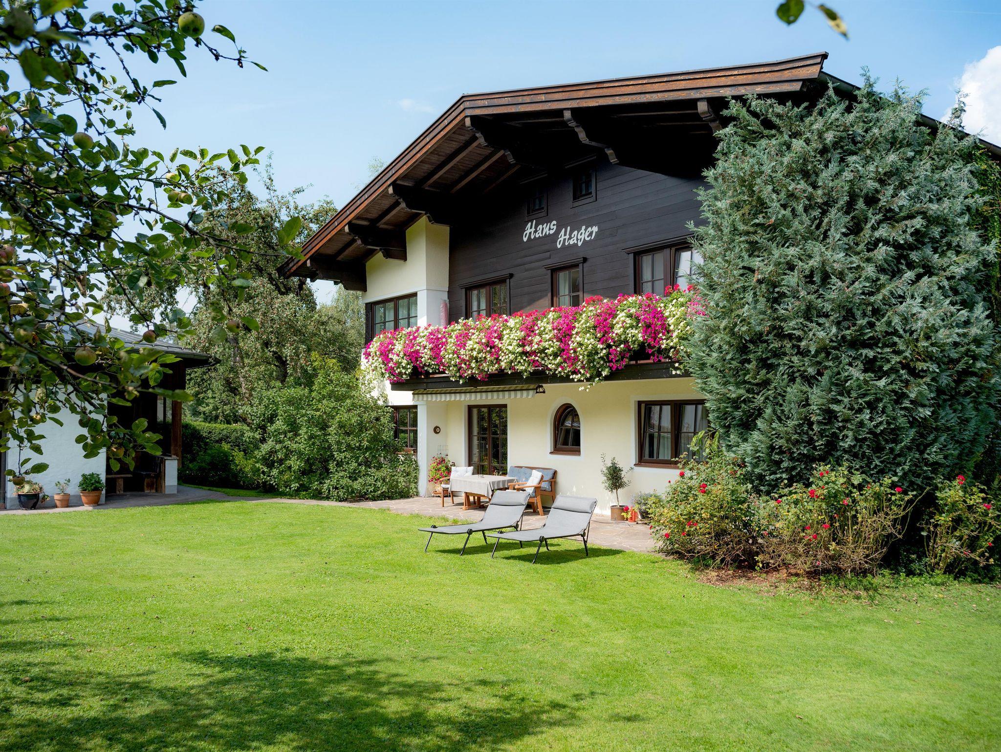 Genießen Sie den schönen Ausblick auf den Wilden Kaiser und den großen Garten, der allen Gästen des Hauses zur Verfügung steht.
