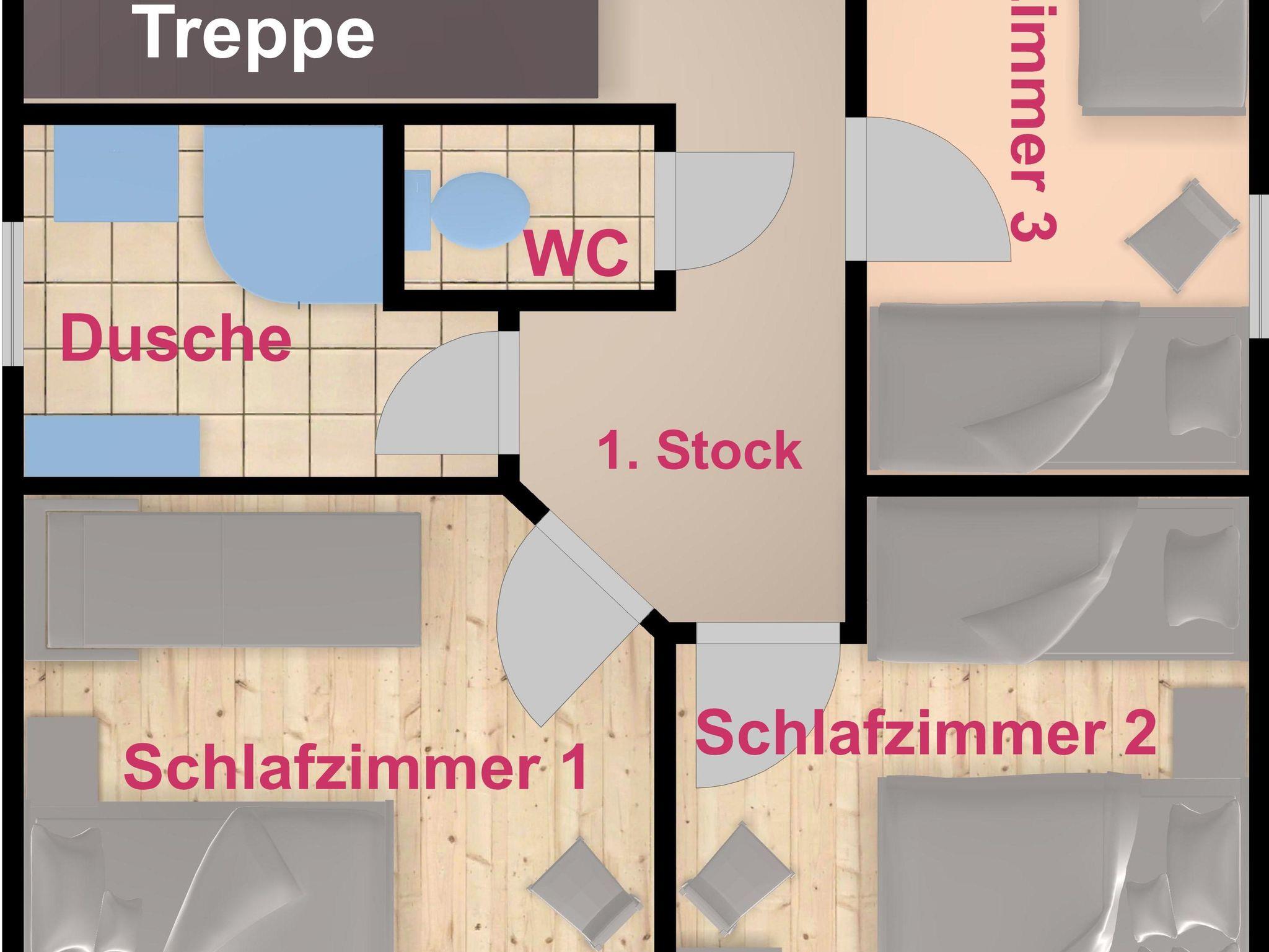 • 3 separate Schlafzimmer mit LED-TV (1 Dreibettzimmer, 1 Doppelzimmer und 1 Zimmer mit zwei Einzelbetten)