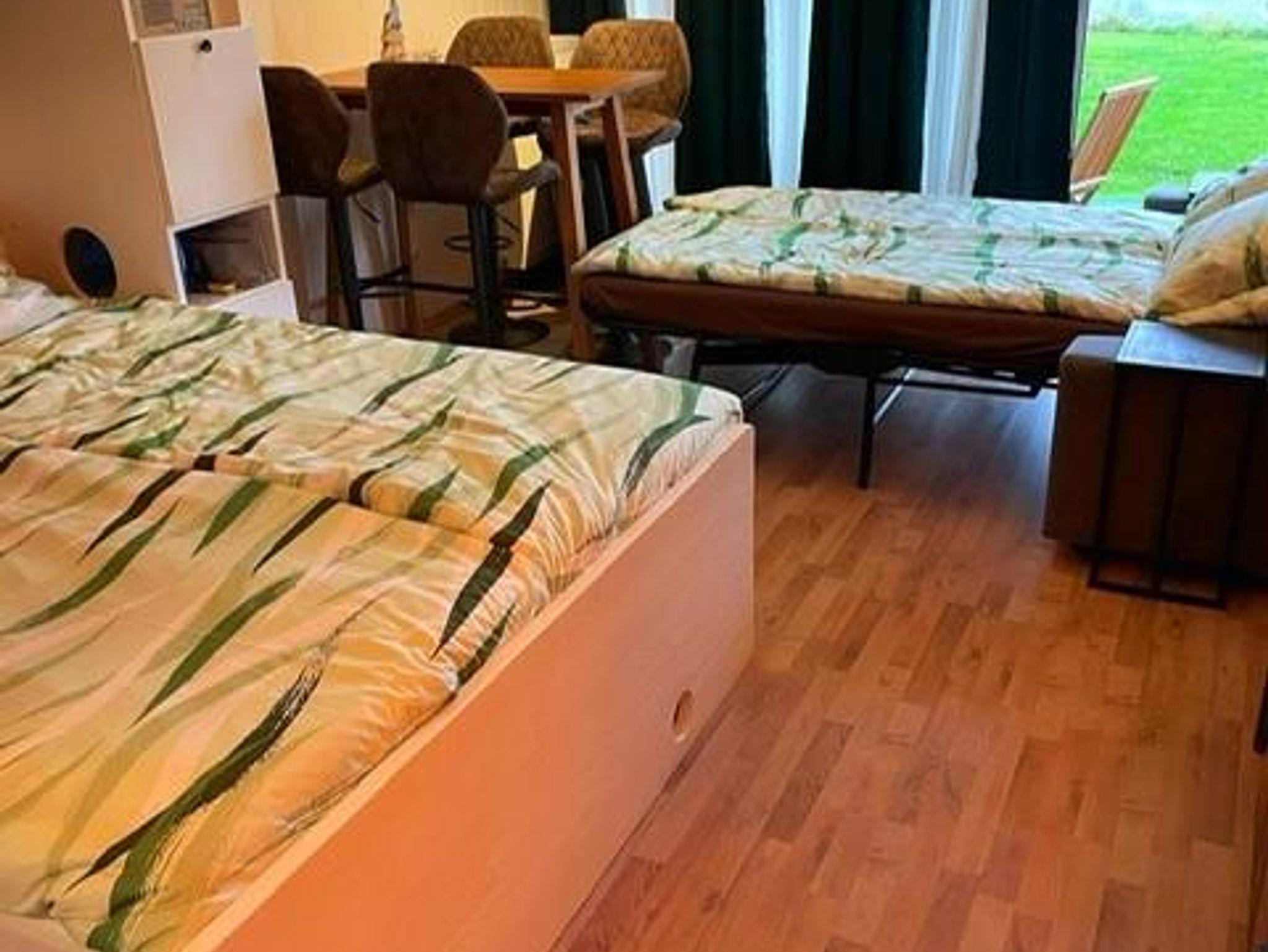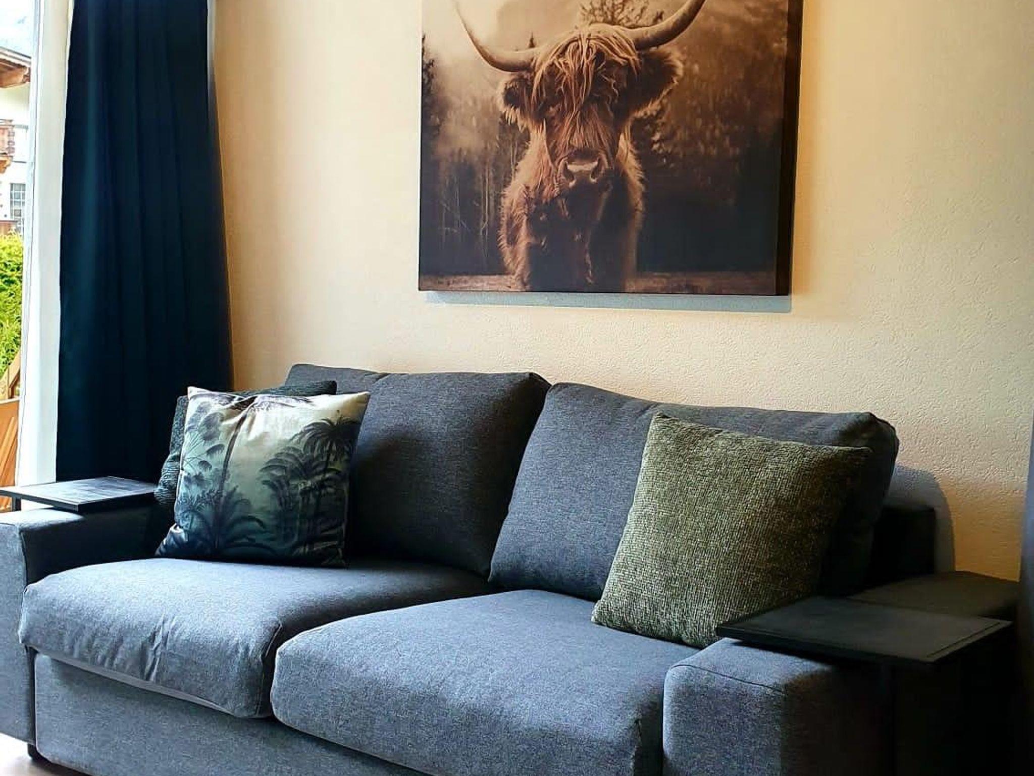 Im Erdgeschoss befindet sich das Appartement Kaiserseite, ein voll ausgestattetes Studio, ideal für 1 bis 3 Erwachsene oder 2 Erwachsene mit 1 oder 2 Kindern. Bitte beachten Sie, dass die ausziehbare Couch nur 1,20 Meter breit ist und maximal 110 Kilogramm tragen kann.