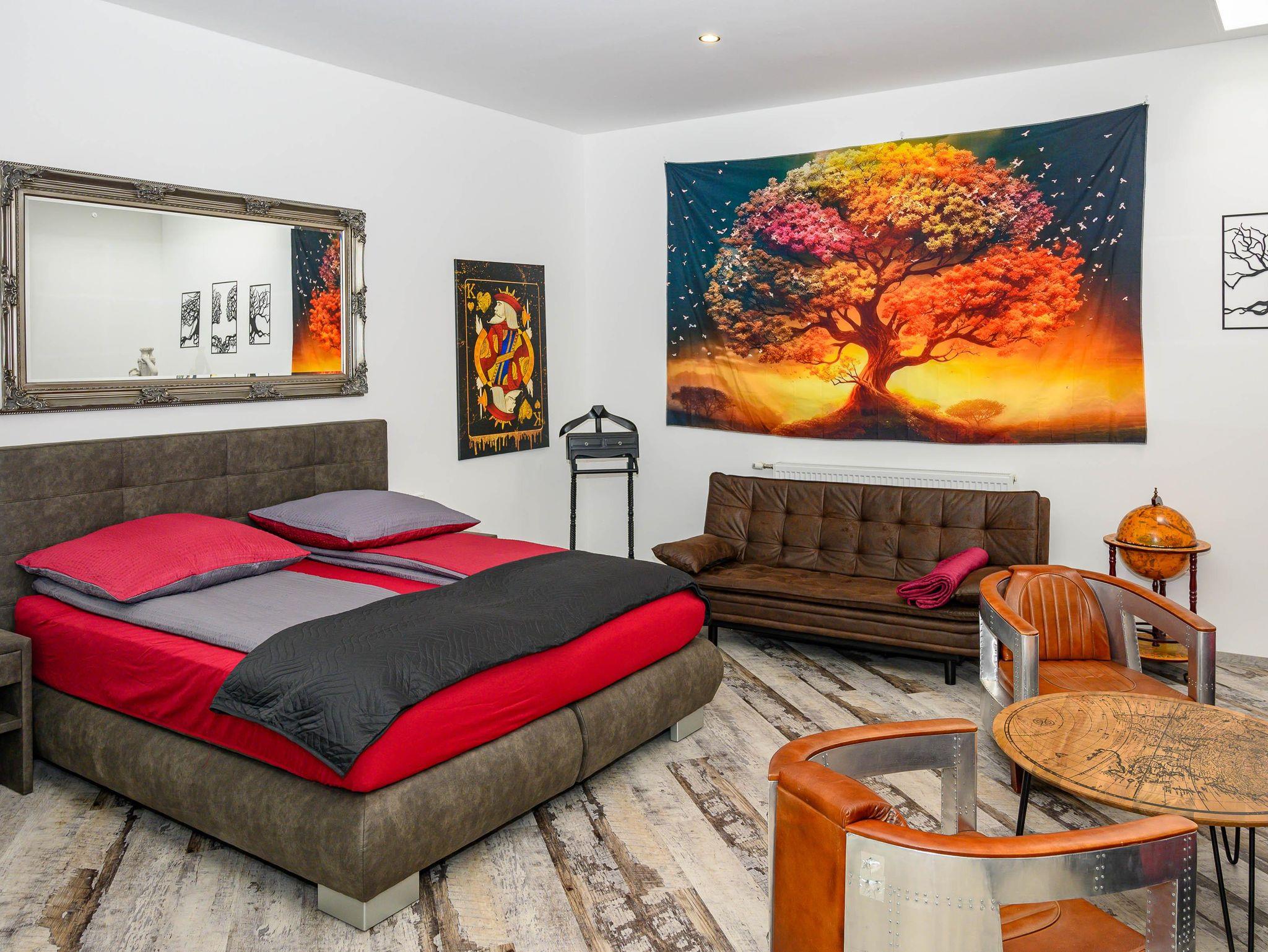 All unsere Zimmer haben die 4 Jahreszeiten zum Thema. Die neu gestalteten Räumlichkeiten zeichnen sich durch ihr einzigartiges Flair, die farbenfrohe Raumgestaltung und eine ausgiebige Zimmergröße aus. Unsere Zimmer sind alle mit großzügigen Bädern, Boxspringbetten, Flatscreens und Schreibtischen ausgestattet. Mit unserem gemütlichen Schlafsofa haben bis zu 4 Peronsnen die Möglichkeit in diesem Zimmer zu nächtigen.