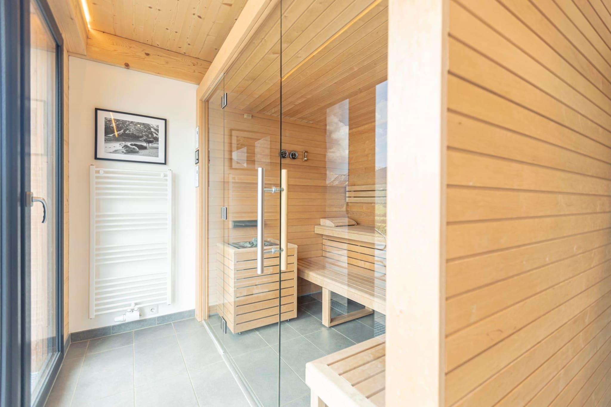 Velkommen til den luksuriøse 150 m² Superior Chalet, et perfekt tilflugtssted for op til 10 gæster. Denne rummelige hytte har fem elegant designede soveværelser og fem badeværelser, heraf fire en suite. Nyd ultimativ afslapning på badeværelset med en Bali-dampbruser og sauna, eller slap af i badekarret med en ekstra bruser. Der er bekvemt et separat toilet og hårtørrer. Chaletens højdepunkter omfatter en privat sauna og en 27°C varm pool på terrassen, perfekt til at slappe af og nyde den alpine atmosfære. Med direkte adgang til pister og private wellness-områder kan du også drage fordel af Schladming-Dachstein Summer Card (midten af maj til begyndelsen af november) og spise på kAlps Foodbar. Schladming-Dachstein-regionen byder på en bred vifte af aktiviteter året rundt. Om vinteren kan du udforske familieskiområder som Ski Fageralm og Ramsau, mens sommeren inviterer dig til naturskønne vandreture, alpine søer og spændende via ferratas. Deltag i guidede sneskovandringer, alpaca-vandringer og mere, med topbegivenheder som The Nightrace og Mid Europe, der forbedrer dit ophold. Hvert soveværelse er udstyret med komfortable boxspring-dobbeltsenge, der sikrer en god nats søvn. Det lyse, luftige opholdsområde, komplet med et hyggeligt gaskomfur, tilbyder en fantastisk udsigt over bjergene, hvilket forbedrer din afslapning efter en dag med eventyr. Det fuldt udstyrede køkken imødekommer alle dine kulinariske behov, med bestik og køkkengrej, en keramisk kogeplade, ovn, køleskab med fryser og opvaskemaskine. Yderligere faciliteter omfatter en brødrister, elkedel og både et filter og en Nespresso-kapselkaffemaskine. Et lille startsæt med vigtige forsyninger venter på dig ved ankomsten. Gratis Wi-Fi og satellit-tv er til rådighed for din bekvemmelighed. Bemærk venligst, at alle billeder er eksempelbilleder; hver hytte er unikt indrettet for at give en særegen oplevelse.