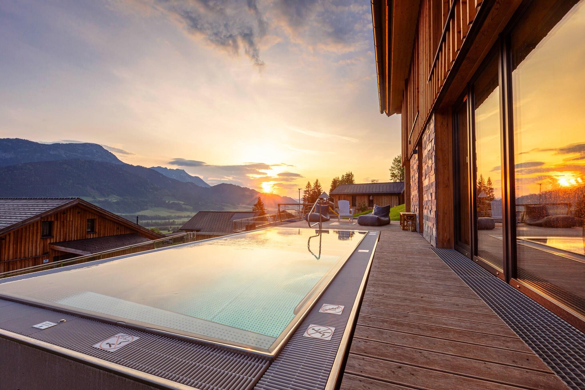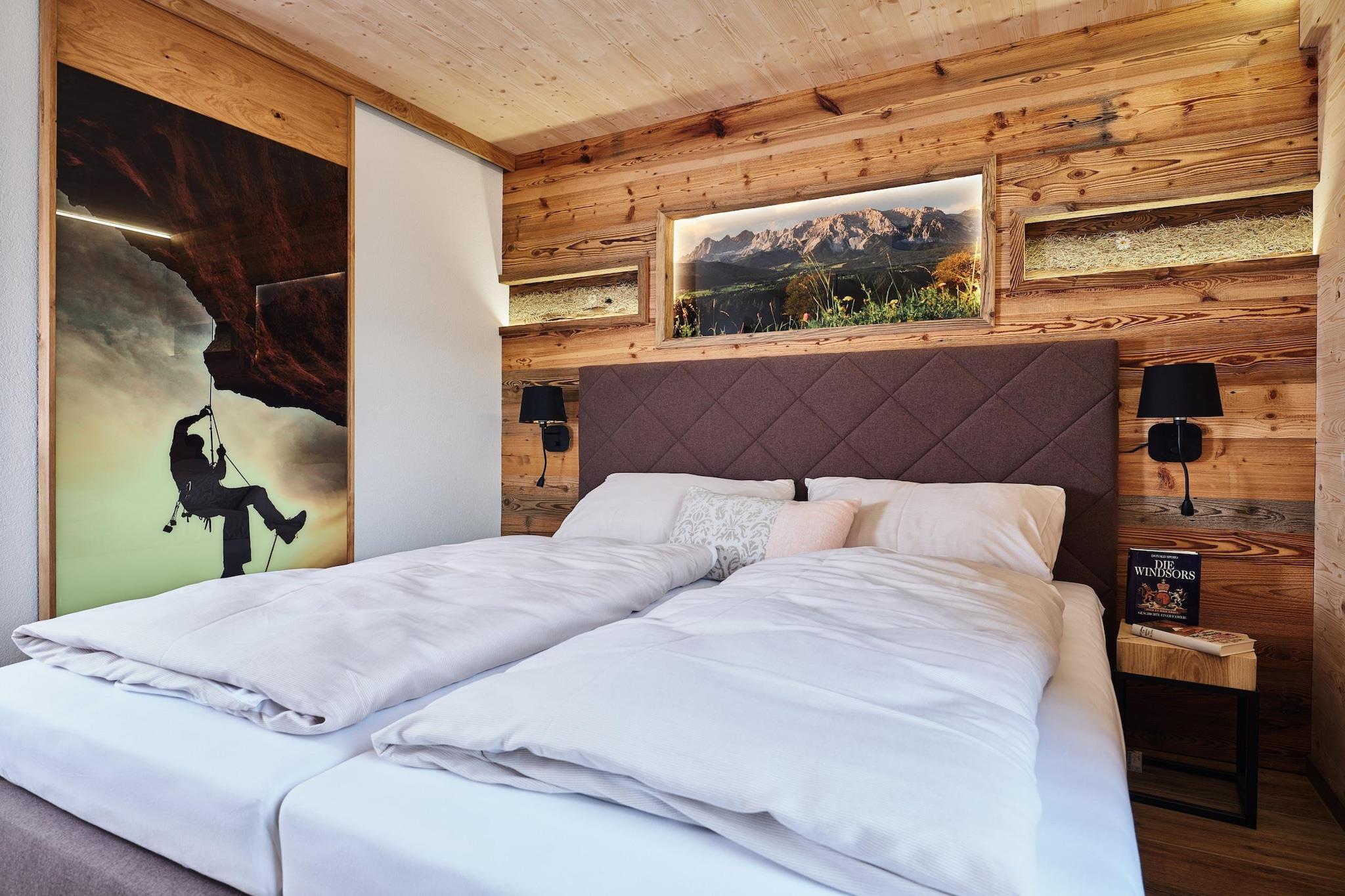Velkommen til vores stilfulde 95 m² Superior-lejlighed på Hauser Kaibling Mountain Resort, ideel til op til 4 gæster. Denne moderne lejlighed i 2 etager har 2 soveværelser og 2 badeværelser, herunder et en-suite badeværelse og et ekstra badeværelse med bruser og sauna. Et separat toilet tilføjer ekstra bekvemmelighed. Du sover roligt i komfortable dobbeltsenge med boxspring. På nederste etage finder du velindrettede soveværelser og et fuldt udstyret køkken med spiseplads. Køkkenet omfatter bestik, køkkengrej, keramisk kogeplade, ovn, køleskab med fryser og opvaskemaskine. Yderligere faciliteter som f.eks. brødrister, kedel og både et filter og en Nespresso-kapsel-kaffemaskine er tilgængeligt ved din ankomst. Den lyse og luftige opholdsstue er placeret i galleriet, og tilbyder et hyggeligt sted at slappe af og nyde en fantastisk udsigt. Træd udenfor til den private terrasse for at nyde det udendørs badekar eller slappe af i saunaen, perfekt til at slappe af efter en dag med udforskning af Schladming-Dachstein-regionen. Lejligheden er bekvemt placeret omkring 300 meter fra pisterne, med gratis Wi-Fi og satellit-tv til din underholdning. Bemærk venligst, at alle billeder er eksempelbilleder; hver lejlighed er unikt indrettet. Hauser Kaibling Mountain Resort by ALPS RESORTS, som ligger i Haus im Ennstal, Schladming-Dachstein, Steiermark, tilbyder en række feriehuse og lejligheder med private wellnessområder og direkte adgang til pisterne. Nyd det inkluderede Schladming-Dachstein sommerkort (midten af maj til begyndelsen af november) og spis på kAlps Foodbar. Schladming-Dachstein-regionen byder på forskellige aktiviteter, fra skiløb og snowboarding om vinteren til vandreture og mountainbiking om sommeren. Med et varieret ugentligt program og topbegivenheder som The Nightrace og Mid Europe, lover dit ophold eventyr og afslapning hele året rundt.
