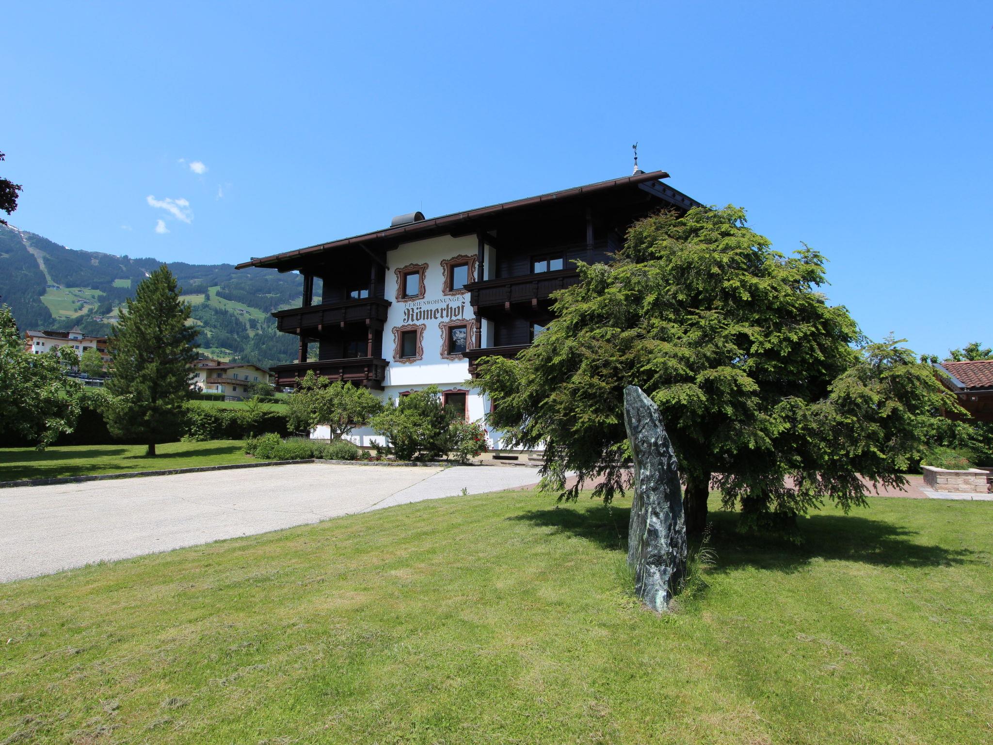 Fügen: Cosy apartment block "Römerhof". 11 apartments in the residence. In the district of Kapfing 1.5 km from the centre of Fügen, in a quiet, sunny position, 6 km from the lake, 1.7 km from the skiing area, in the countryside. For shared use: large, beautiful, well-kept garden. In the house: lounge, WiFi, sauna (all included), storage room for bicycles, storage room for skis, central heating system, washing machine (for shared use, extra). Motor access to the house. Parking at the house. Supermarket 1 km, restaurant, bakery 300 m, 10 minute walk to the centre, bus stop "Kapfing Dorf" 400 m, railway station "Kapfing Bahnhaltestelle" 450 m, outdoor swimming pool, indoor swimming pool 700 m, thermal baths "Erlebnistherme Fügen" 700 m, bathing lake "Schlitterer See" 6 km. Golf course (18 hole) 2 km, cycle lane 50 m, ski lift 1.5 km, gondola lift 1.7 km, ski bus stop 100 m. Well-known ski regions can easily be reached: Spieljochbahn Fügen 1.7 km, Hochzillertal-Hochfügen Kaltenbach 5 km. Please note: ski bus (free of charge). Additional accommodations can be booked. Limited Wi-Fi reception!