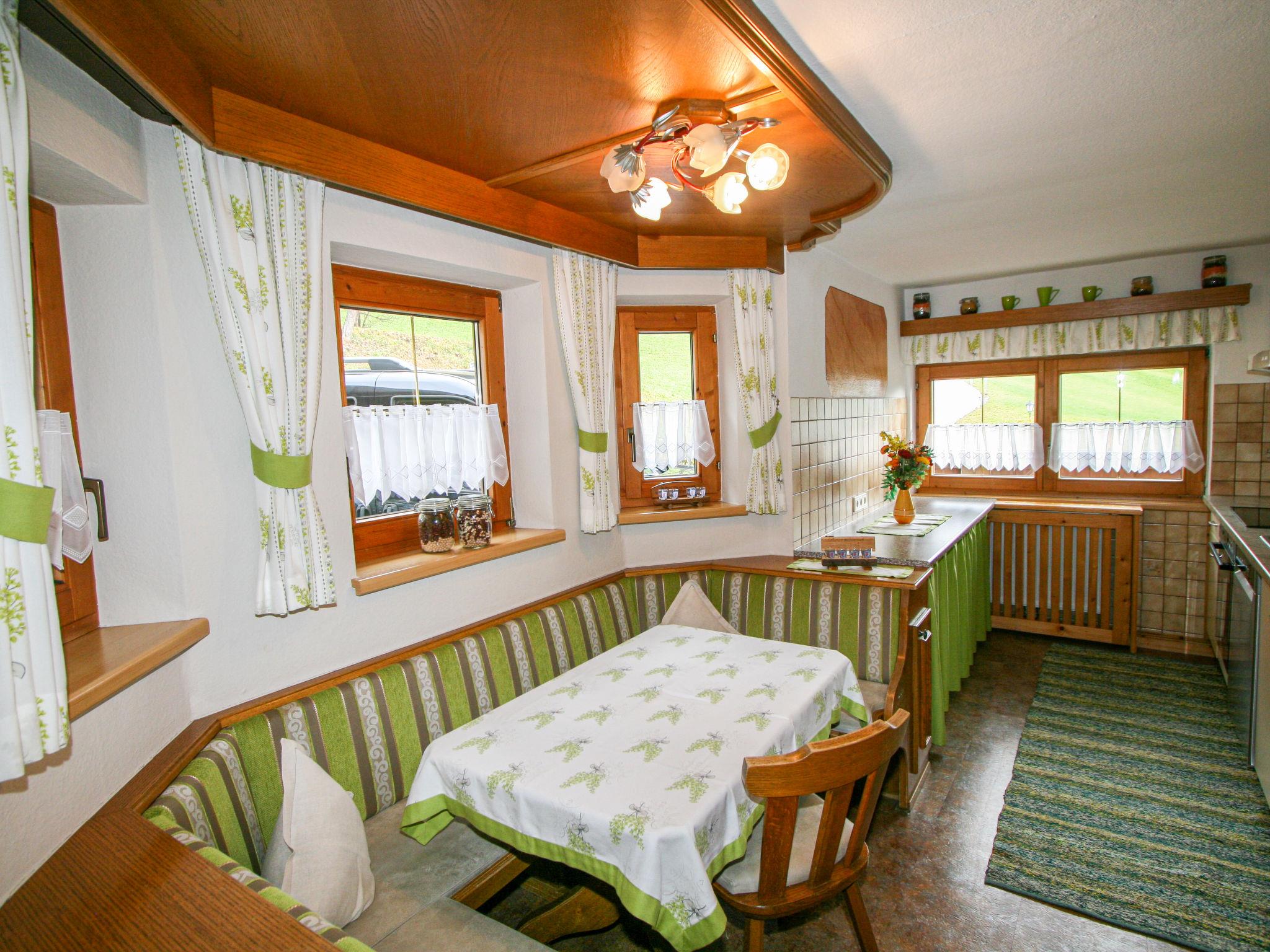 "Comfortappart Eberharter", 5-room apartment 120 m2 on 2 levels. Tasteful and wooden furniture furnishings: shower, sep. WC. Upper floor: living room with satellite TV, radio, CD-player and DVD. Kitchen (oven, dishwasher, 4 ceramic glass hob hotplates, toaster, kettle, microwave, electric coffee machine) with dining table. 2nd upper floor: 1 double bedroom with hand-basin. 1 room with 2 beds. 1 room with 1 bed and 1 double bed. 1 room with 1 bed and 1 x 2 bunk beds. Bath/shower/WC, double hand-basin. Heating. Parquet floors, carpet. Balcony, terrace roofed. Terrace furniture. Beautiful panoramic view. Facilities: children's high chair, baby cot. Internet (WiFi, free). Please note: non-smokers only. Private entrance, smoke alarm.