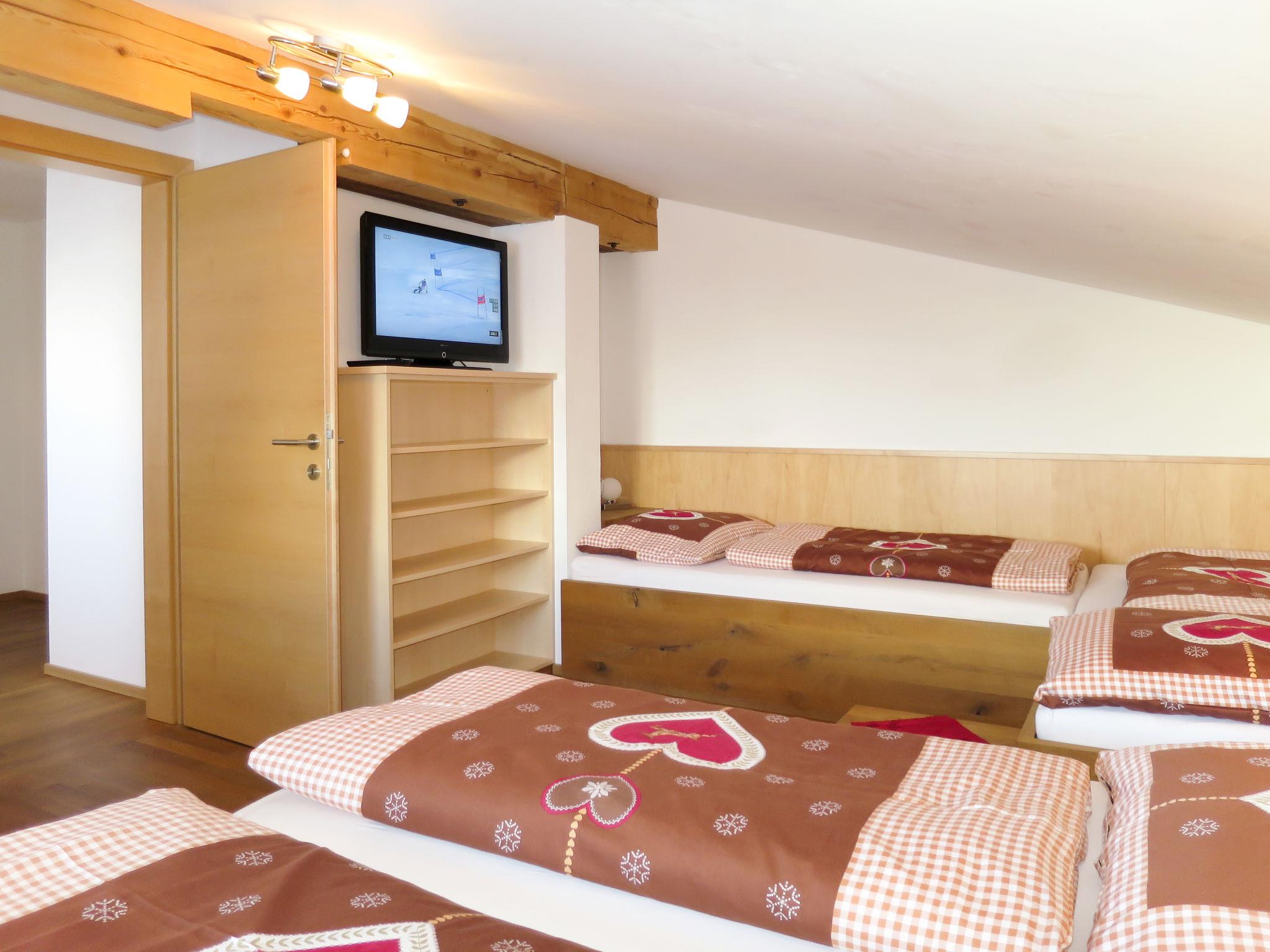 "Apart Vorwies", 5-room apartment 115 m2 on 2nd floor. Bright, modern and tasteful furnishings: living/dining room with sloping ceilings with dining nook and satellite TV. Exit to the balcony. 2 double bedrooms with sloping ceilings. Exit to the balcony. 1 double bedroom. Exit to the balcony. 1 room with sloping ceilings with 2 beds, 1 double bed and satellite TV. Open kitchen (oven, dishwasher, 4 ceramic glass hob hotplates, toaster, kettle, microwave, electric coffee machine). Shower, shower/WC, sep. WC. Underfloor heating. Parquet floors. Balcony 12 m2, balcony 20 m2. Balcony furniture. Facilities: children's high chair, baby cot. Internet (WiFi, free). Please note: non-smokers only. When there are less than the maximum number of guests staying at the property, not all of the housing units will be available for use.