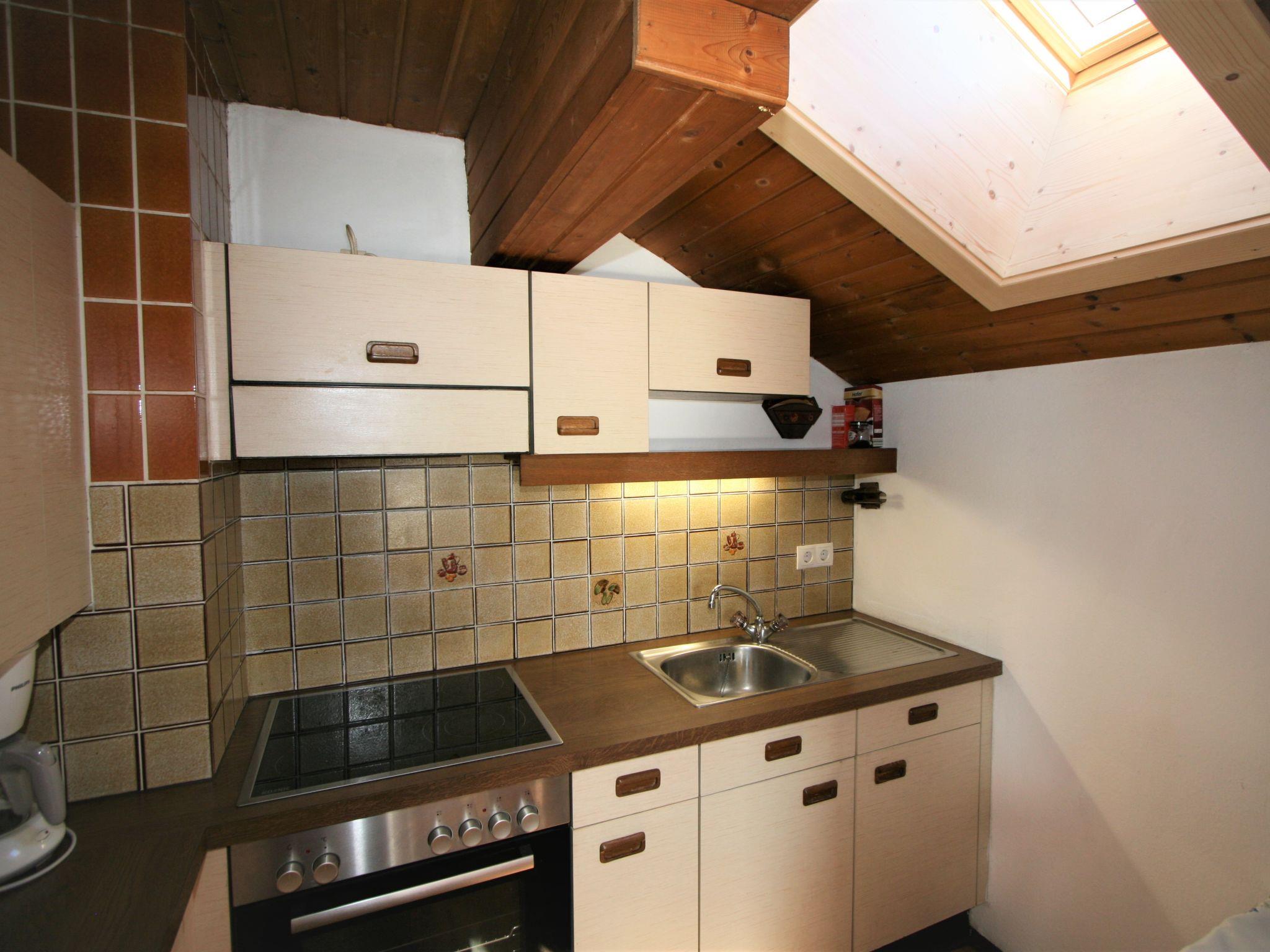 6-room apartment 120 m2 on 2 levels. Object suitable for 8 adults + 2 children. Partly with sloping ceilings, simple furnishings: living/dining room with dining nook and satellite TV (flat screen). 1 double bedroom with hand-basin. Exit to the balcony. 1 room with 1 sofabed, 1 double bed, hand-basin and satellite TV (flat screen). Open kitchen (oven, dishwasher, 4 ceramic glass hob hotplates, toaster, kettle, microwave, electric coffee machine). Shower/WC. Upper floor: living/dining room with dining nook and satellite TV (flat screen). Exit to the balcony. 1 double bedroom with sloping ceilings with rooflight with hand-basin. 1 room with 1 sofabed, 1 double bed and hand-basin. Open kitchen (oven, 4 ceramic glass hob hotplates, toaster, kettle, electric coffee machine). Shower/WC. Carpet. 2 balconies. Balcony furniture. Very beautiful panoramic view of the mountains. Facilities: children's high chair, baby cot for up to 2 year olds. Internet (WiFi, free). Maximum 2 pets/ dogs allowed. The apartments are open to the stairwell. The owner lives on the ground floor. Skis can be parked in the garage. The ski boots in the stairwell.