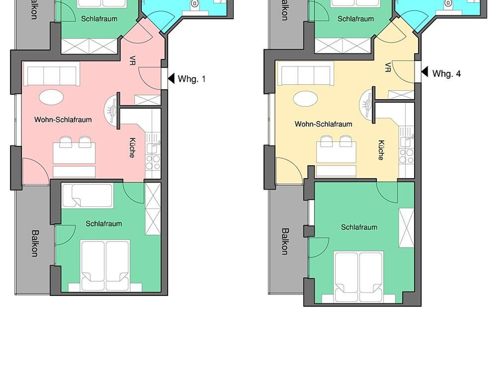 Diese komplett NEUEN und MODERNEN Wohnungen bestehen aus je einem Wohn/Schlafraum inkl. Küche, 2 separaten Schlafzimmern, Badezimmer mit Dusche/WC und zwei herrlichen Balkonen Richtung Süden bzw. Südwesten.