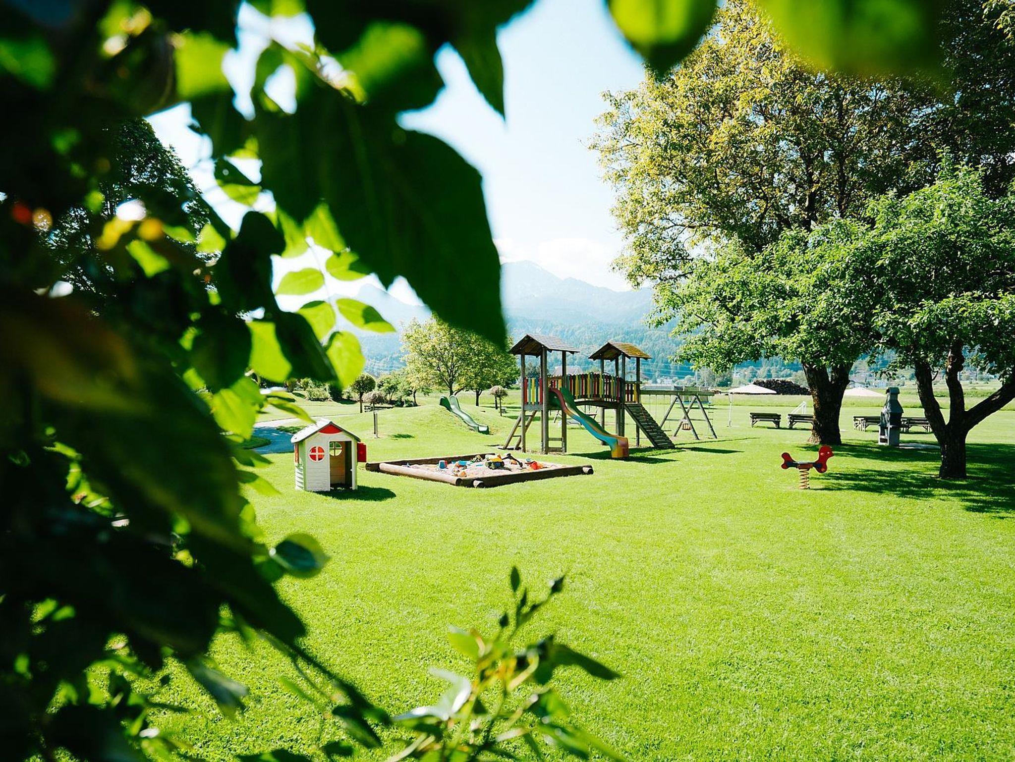 Das Stammhaus steht außerhalb des Ortes Faak am See, mitten im Grünen, sonnenbegünstigt mit freiem unverbauten Ausblick auf die Bergwelt und Weidevieh. Für Badefreunde gibt es den großen, eigenen Badestrand am Faakersee mit flach abfallendem Sandstrand!