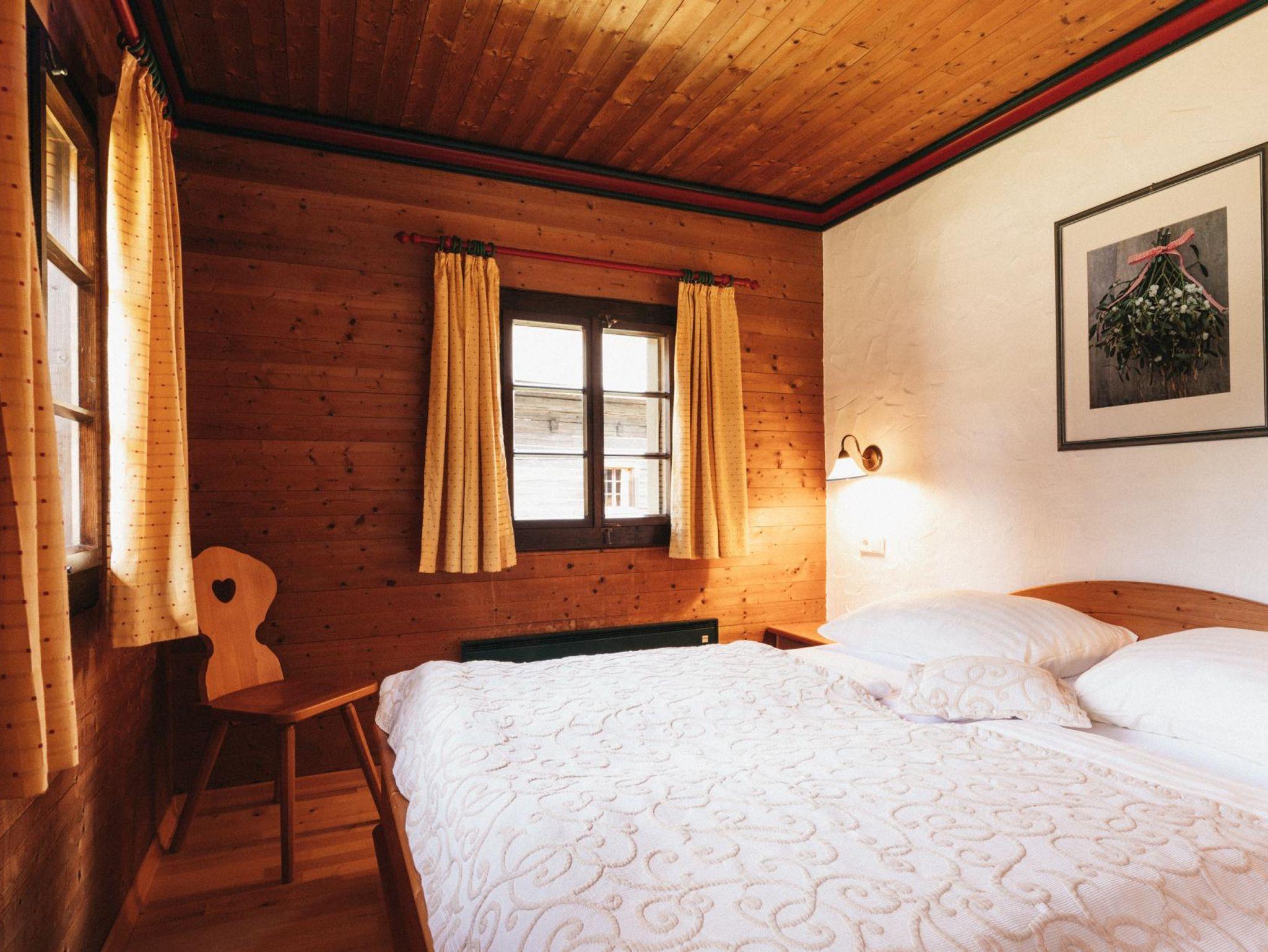 Im Parterre mit einer Wohnfläche von ca. 35 m², augestattet mit Küchenzeile, Wohnraum mit Sitzgruppe (2 Sitz-/Schlafcouches), Kachelofen und Essecke, kleines Schlafzimmer mit Etagenbett, Dusche, WC.
