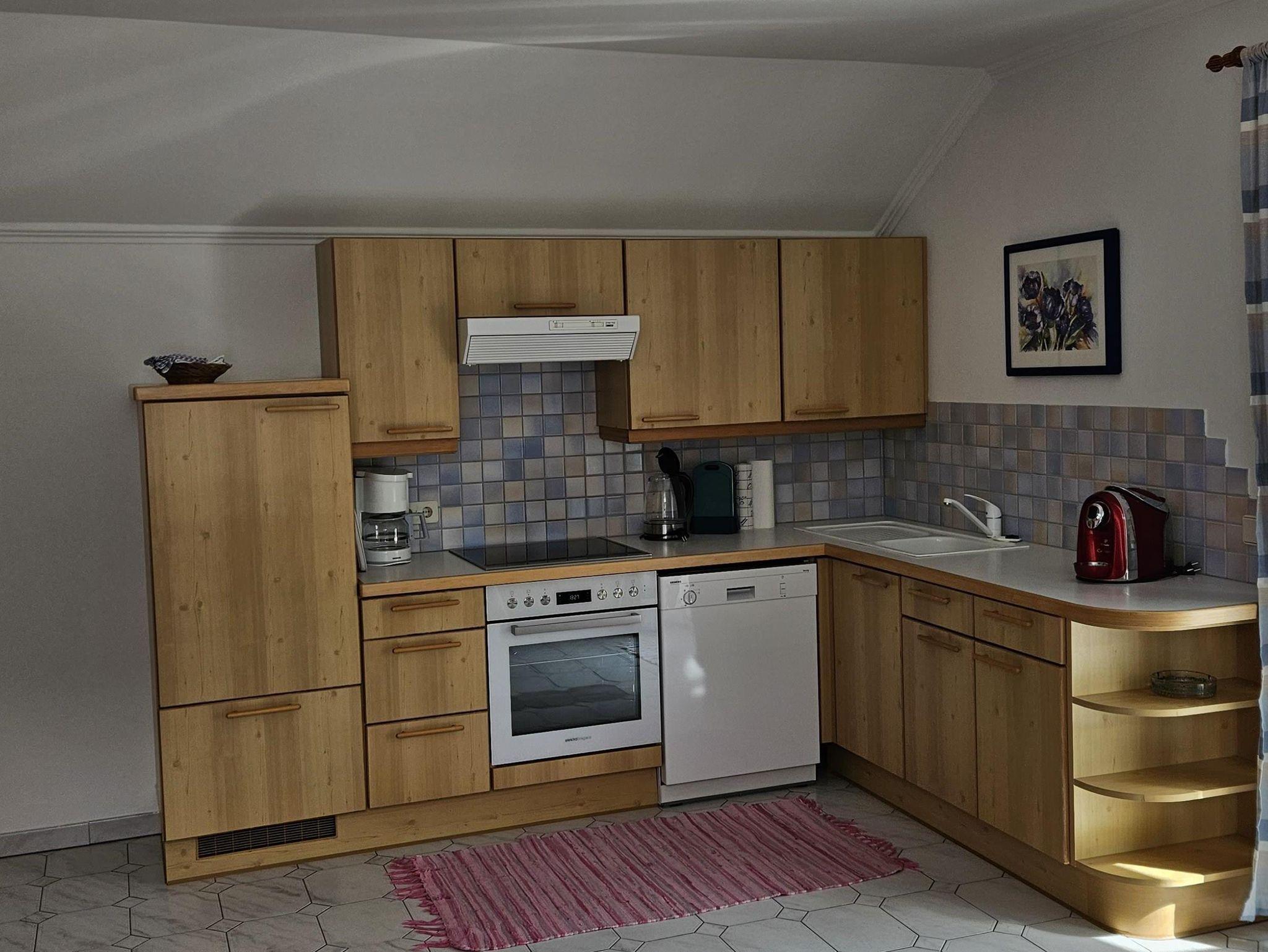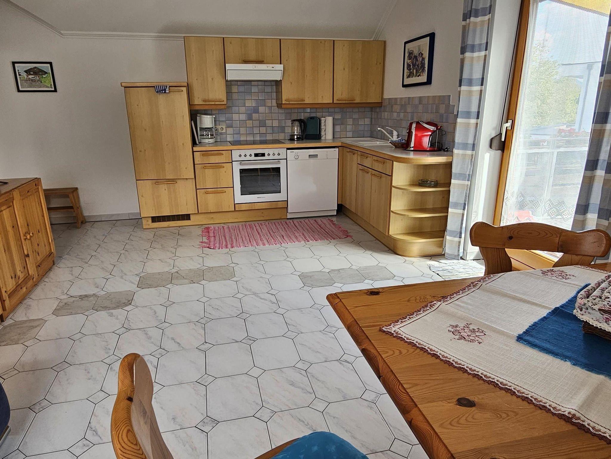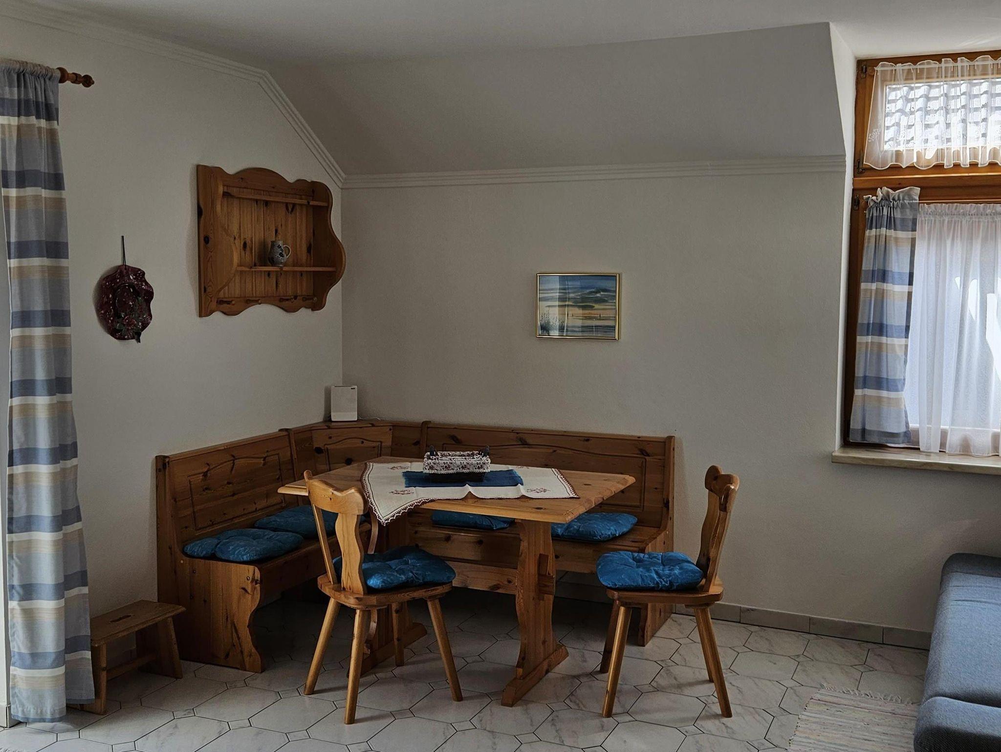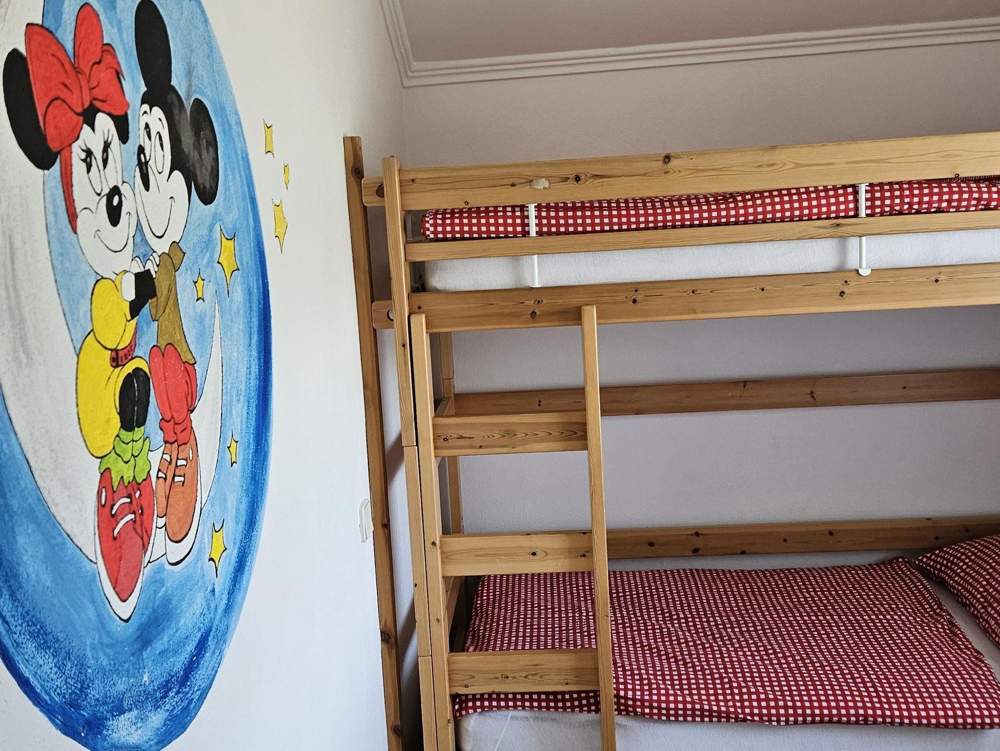 Die Ferienwohnung verfügt über eine große Wohnküche mit einem Schlafzimmer und einem Kinderzimmer mit Stockbett, Dusche, WC und großer Balkon-Terrasse.