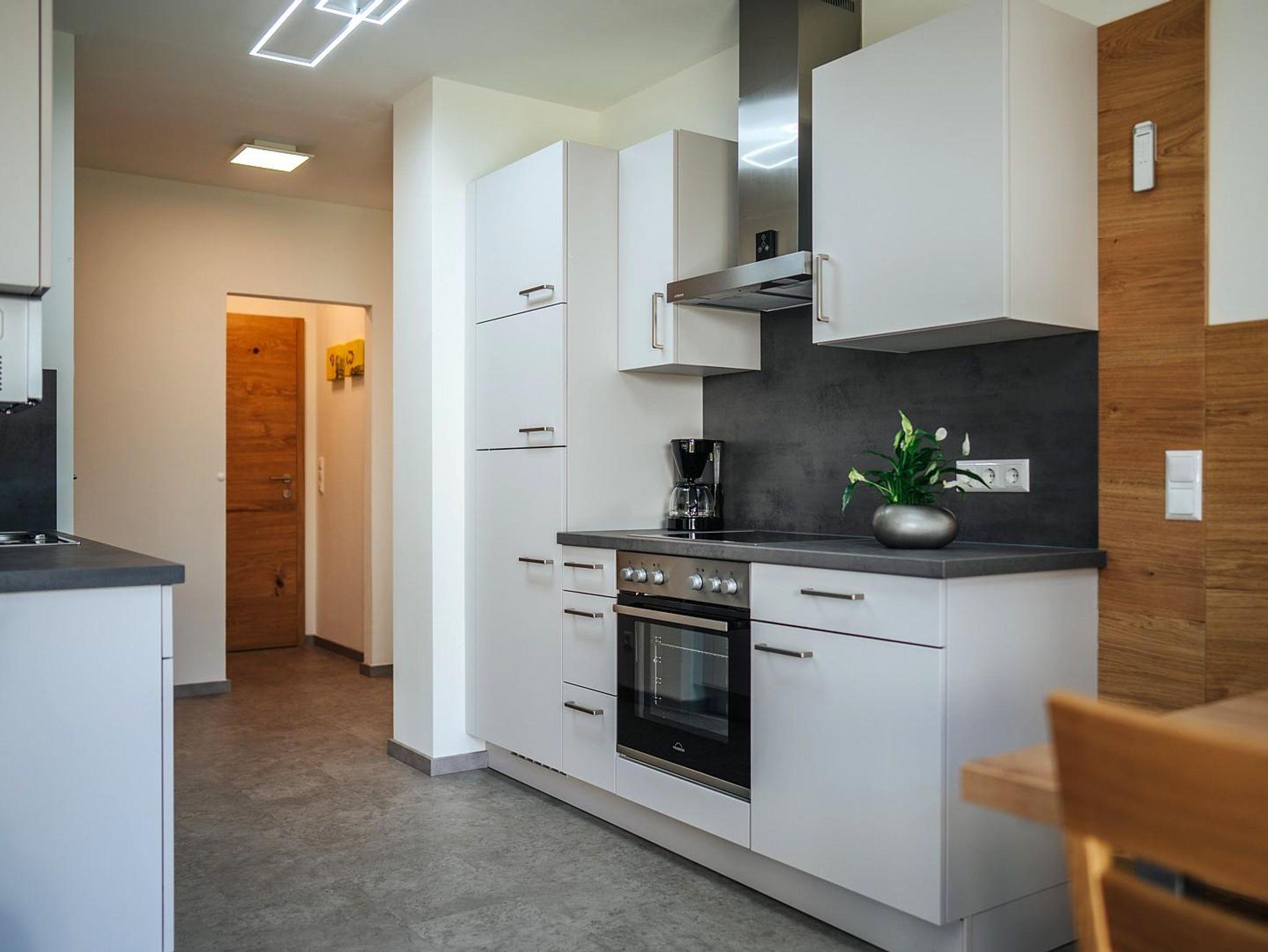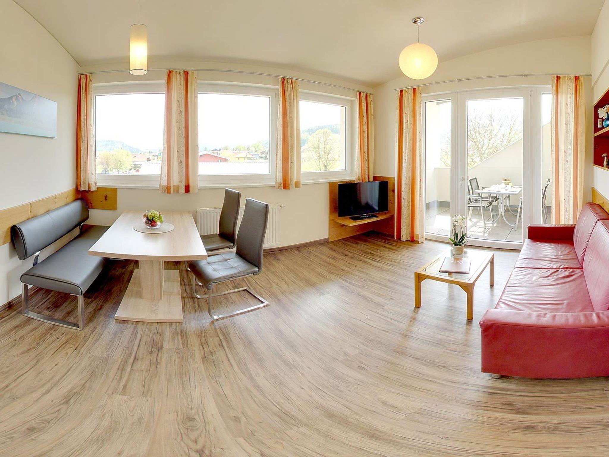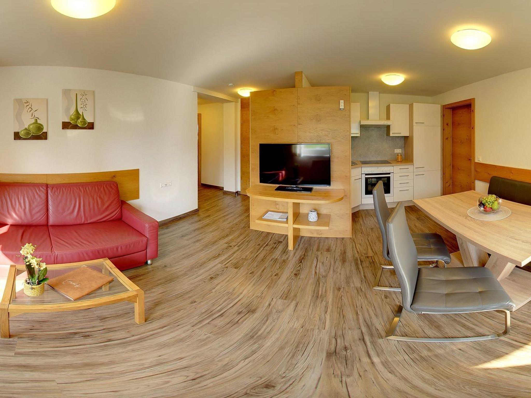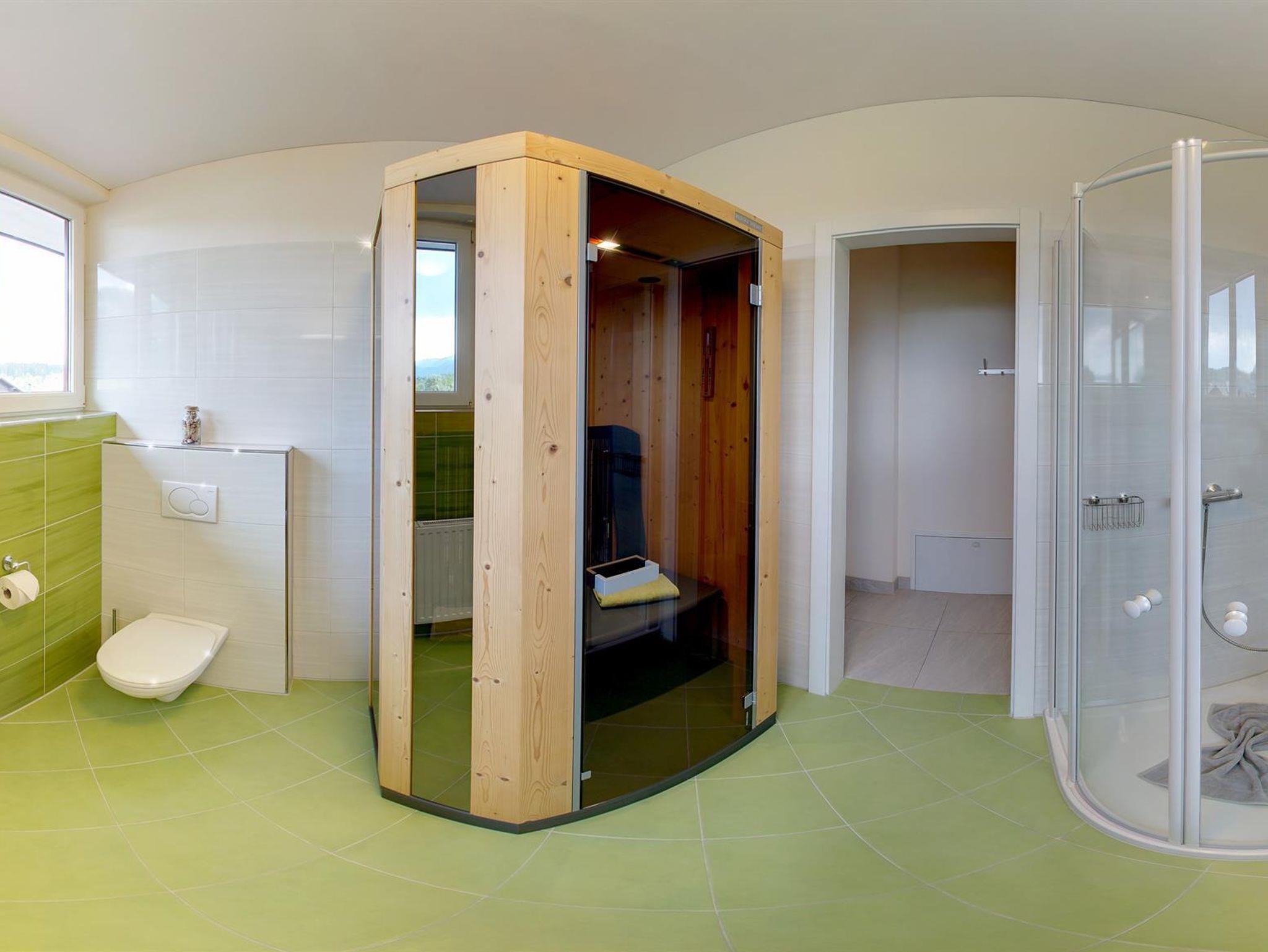 Diese komplett neue Wohnung (neu ab dem Urlaubsjahr 2011 - errichtet in unserem Ferienhaus Villa Karglhof) besteht aus einem Vorraum mit Garderobe, großem Wohn/Essraum, Küche, 2 separaten Schlafzimmern, 1 Kinderzimmer (Mansarde), Badezimmer (mit Infrarotkabine, Dusche und WC), Kinderbadezimmer (Mansarde: mit Waschgelegenheit und WC) und einem herrlichen Südbalkon.