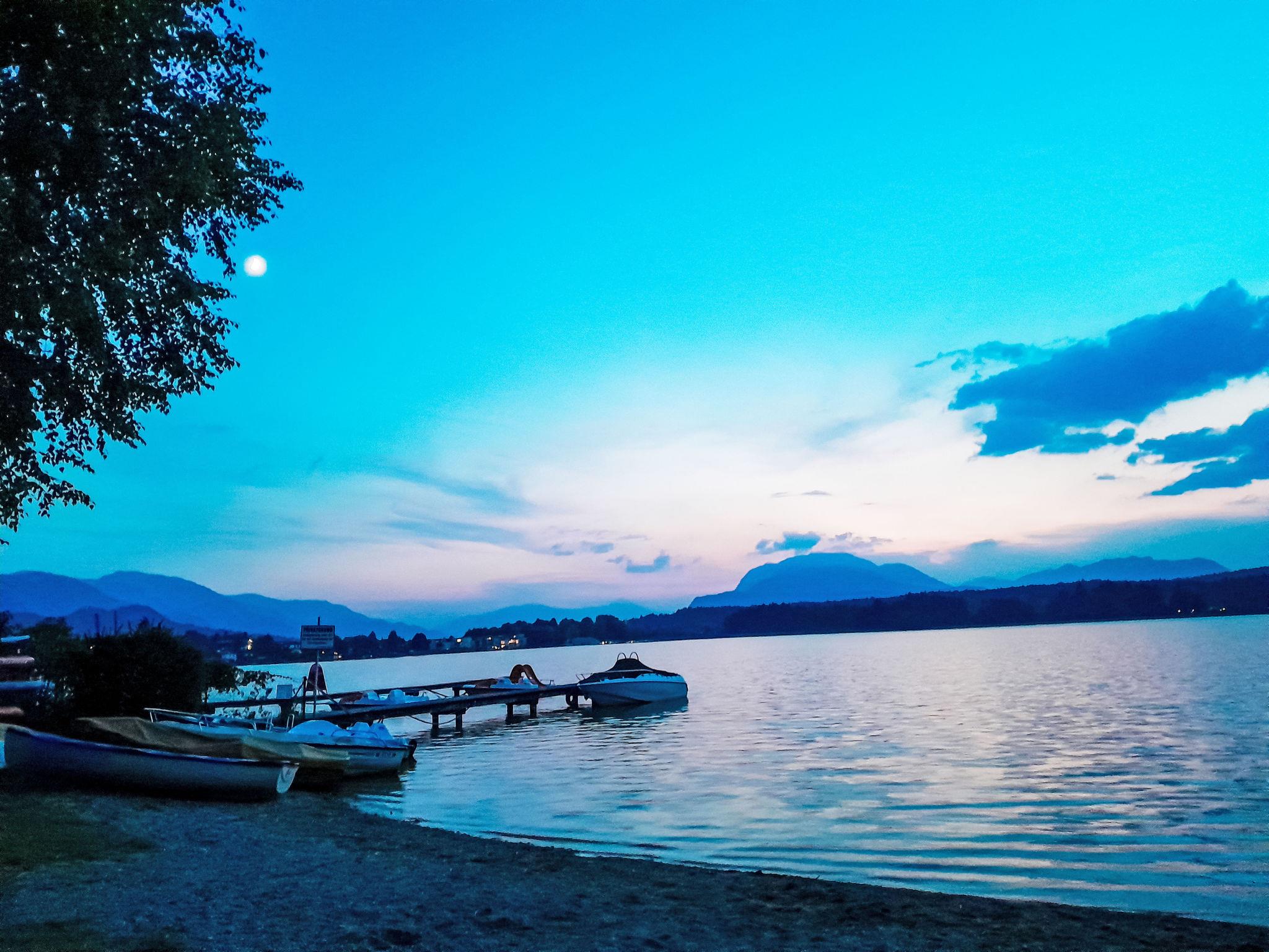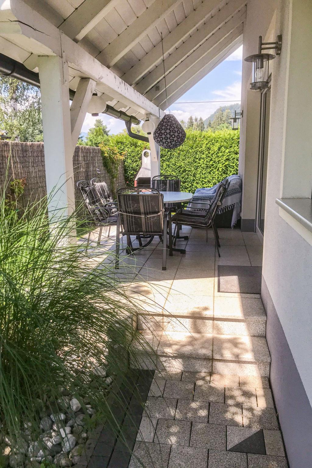 Child friendly, modern single-family house "Seehaus Blue Faak", 2 storeys. 1 km from the centre, in a sunny position, traffic calmed area, 40 m from the lake, in a cul-de-sac. Private: property 250 m2 (fenced), lawn for sunbathing. Barbecue. In the house: WiFi, storage room for bicycles, storage room for skis, ski boot dryer. Parking (for 2 cars) at the house. Supermarket 2 km, shopping centre 10 km, restaurant 300 m, bar 900 m, bicycle rental 900 m, bus stop 250 m, railway station "Faak am See" 1.7 km, thermal baths "Villach - Warmbad" 8 km, public bathing area 50 m, lake Faaker See 40 m. Sports harbour 1.2 km, golf course (18 hole) 8 km, surf school 3.5 km, sailing school 3.5 km, tennis 5 km, cycle lane 30 m, gondola lift 15 km, skisport facilities 15 km, cross country ski track 13 km. Nearby attractions: Tierpark Rosegg 8 km, Affenberg Burg Landskron mit Adlerwarte 8 km, Casino Velden 10 km, Dreiländereck 26 km, Mölltaler Gletscher 95 km. Well-known ski regions can easily be reached: Gerlitzen 15 km, Nassfeld Tröpolach 60 km, Bad Kleinkirchheim 44 km. Well-known lakes can easily be reached: Wörthersee. Hiking paths: Mittagskogel Karawanken 5 km. The house is located near the lawns of the residents on the edge of the lake. The house includes a license for electric boats.