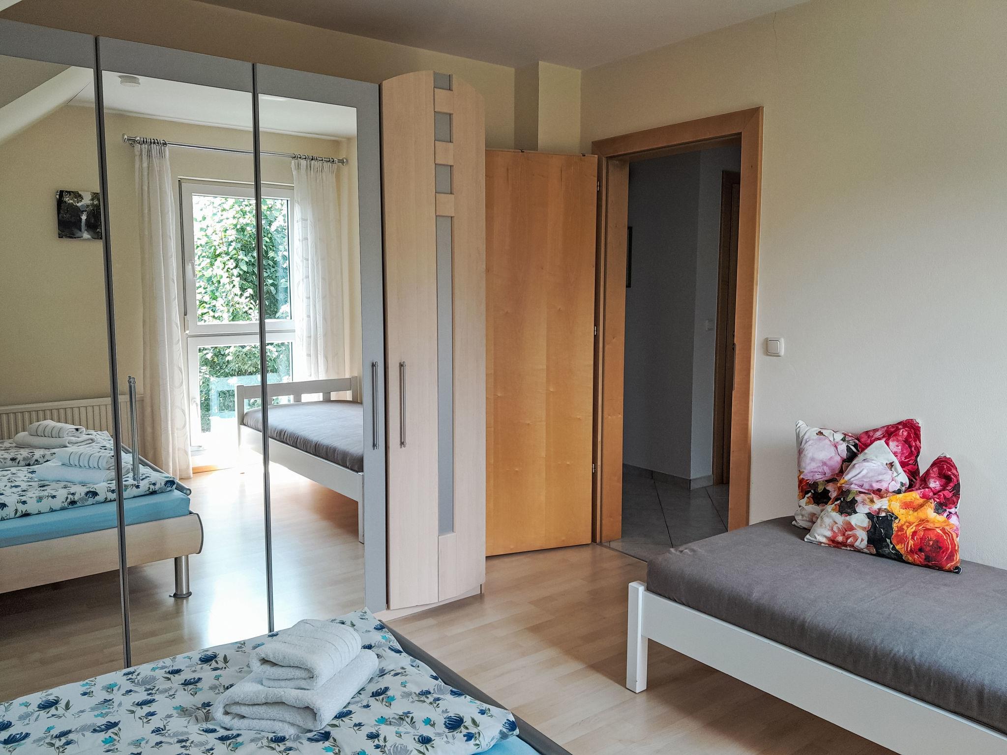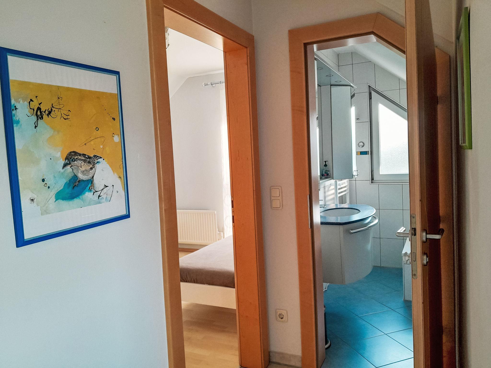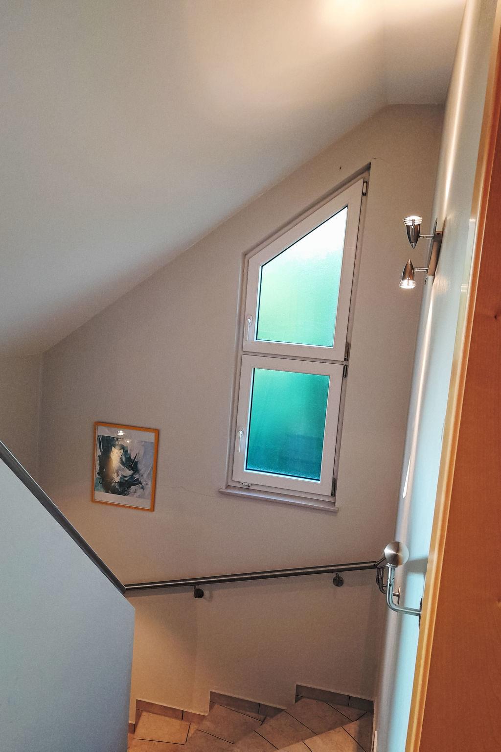 3-room house 86 m2 on 2 levels. Object suitable for 6 adults + 2 children. Bright, modern and cosy furnishings: entrance hall. Living/dining room with 1 double sofabed, Scandinavian wood stove, dining table and satellite TV (flat screen), electric shutters. Exit to the terrace. Open kitchen (oven, dishwasher, 4 ceramic glass hob hotplates, microwave, freezer, electric coffee machine). Shower/WC. Top floor: with sloping ceilings, 2 rooms, each room with 1 bed and 1 double bed. Bathroom, sep. WC. Terrace furniture, deck chairs (4), covered balcony, box-room. Facilities: washing machine, children's high chair, baby cot for up to 2 year olds, hair dryer. Internet (WiFi, free). Please note: suitable for families. Non-smoking house. Smoke alarm. Nespresso machine available. Small bath house in the garden that is due to be moved. Shared use of the private bathing area (1200 sqm), 25 metres of lakeshore is included. 1 paddleboard is available for free use.