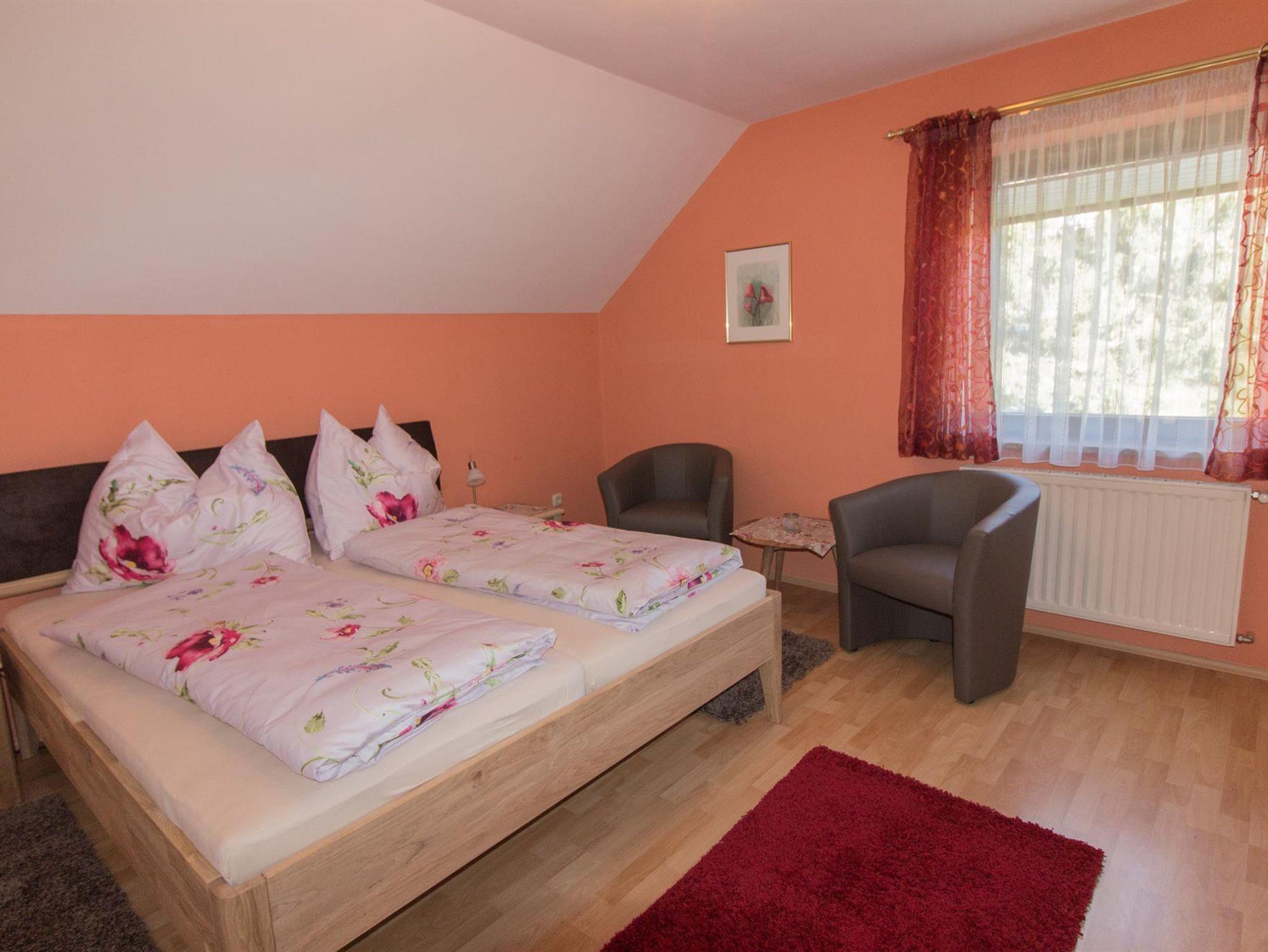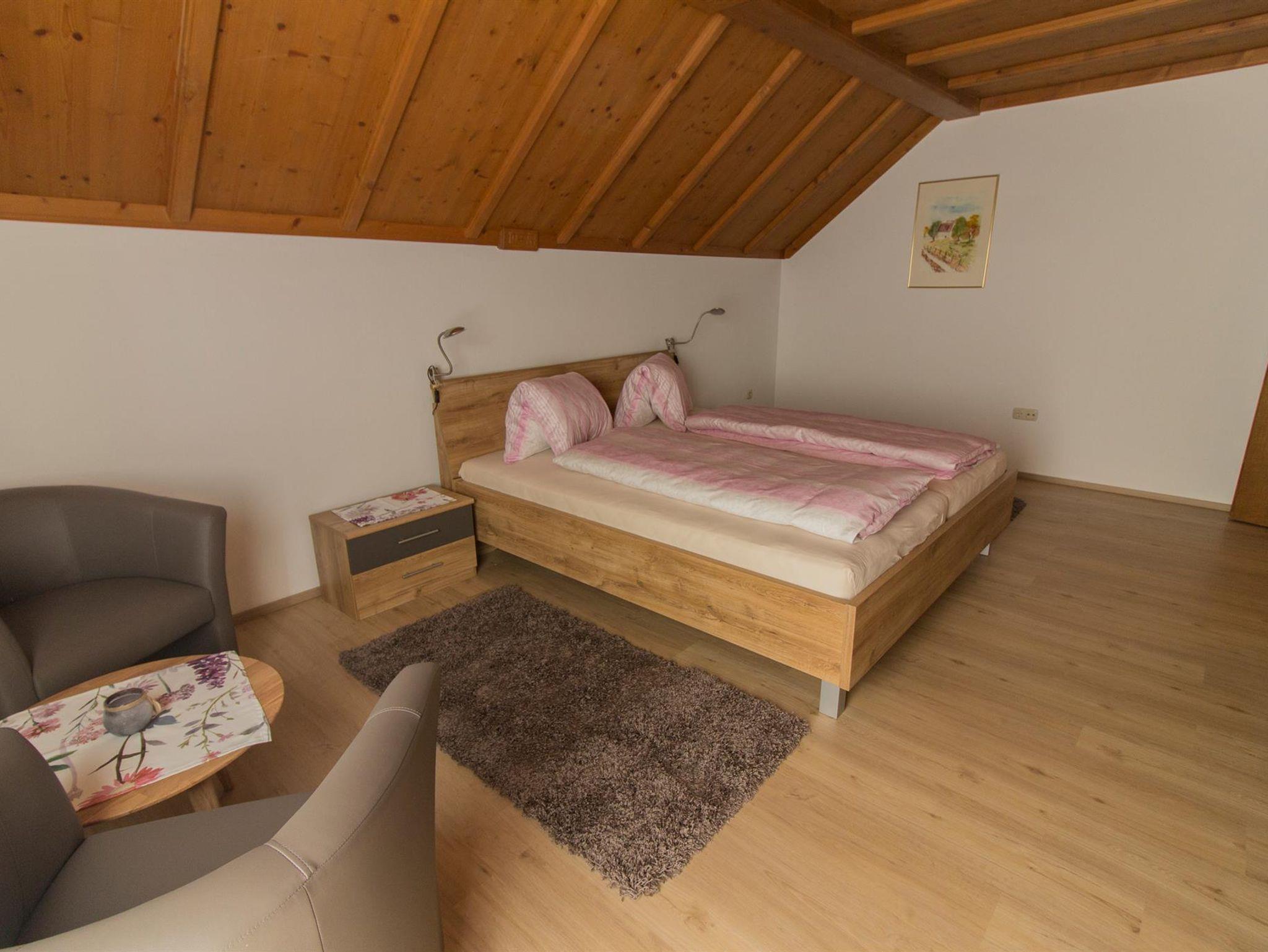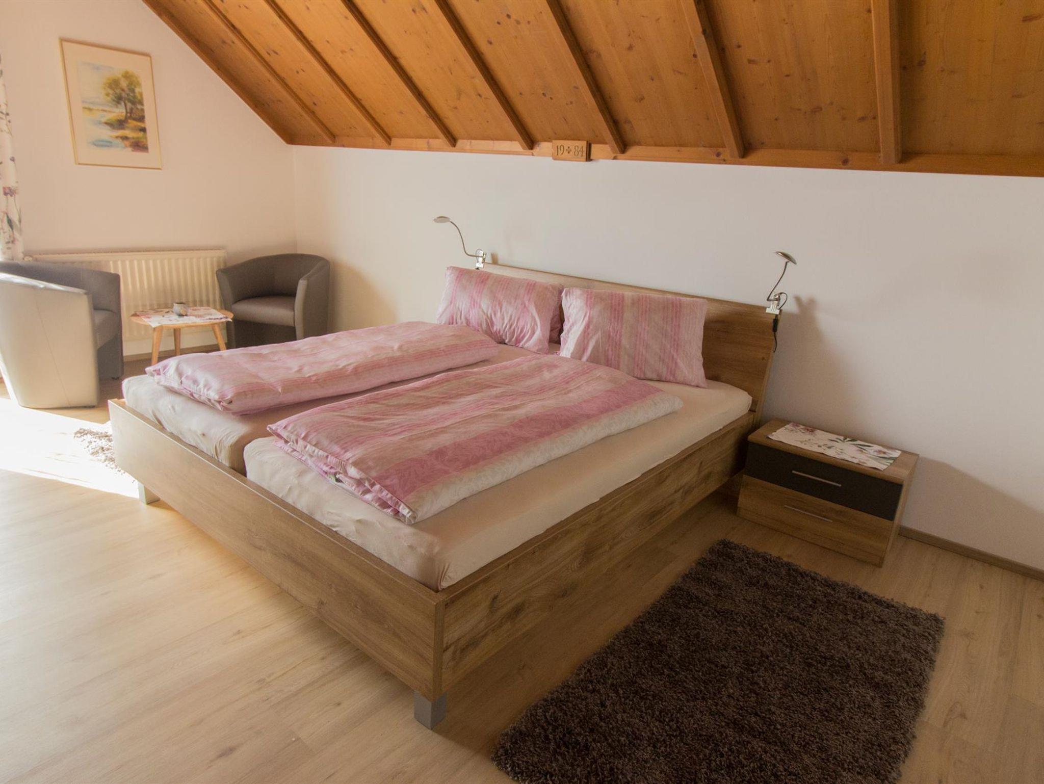 Unsere Ferienwohnung umfasst 90 m2, verteilt auf drei Schlafzimmer, eine geräumige Wohnküche sowie Vorraum mit Gaderobe und ein Badezimmer mit Dusche. Zwei Schlafzimmer, eines davon mit Balkon, bieten ein großes Doppelbett. Ein Schlafzimmer ist mit einem großen Bett mit 1,40 m Breite und einem Sofa ausgestattet, ebenfalls mit Balkon. Die Küche ist gut ausgestattet mit Ceranfeld, Backofen, Geschirrspüler, Kaffeemaschine und sämtlichen Küchenutensilien. Es gibt einen großzügigen Essbereich, wo man auch gemütlich zusammen sitzen kann. Kabel TV und Flachbildschirm sind ebenfalls vorhanden. Neben einer eigenen Terrasse zum Entspannen, Frühstücken oder Grillen unter Dach kann auch der Garten und Grillbereich vorm Haus mitbenutzt werden.