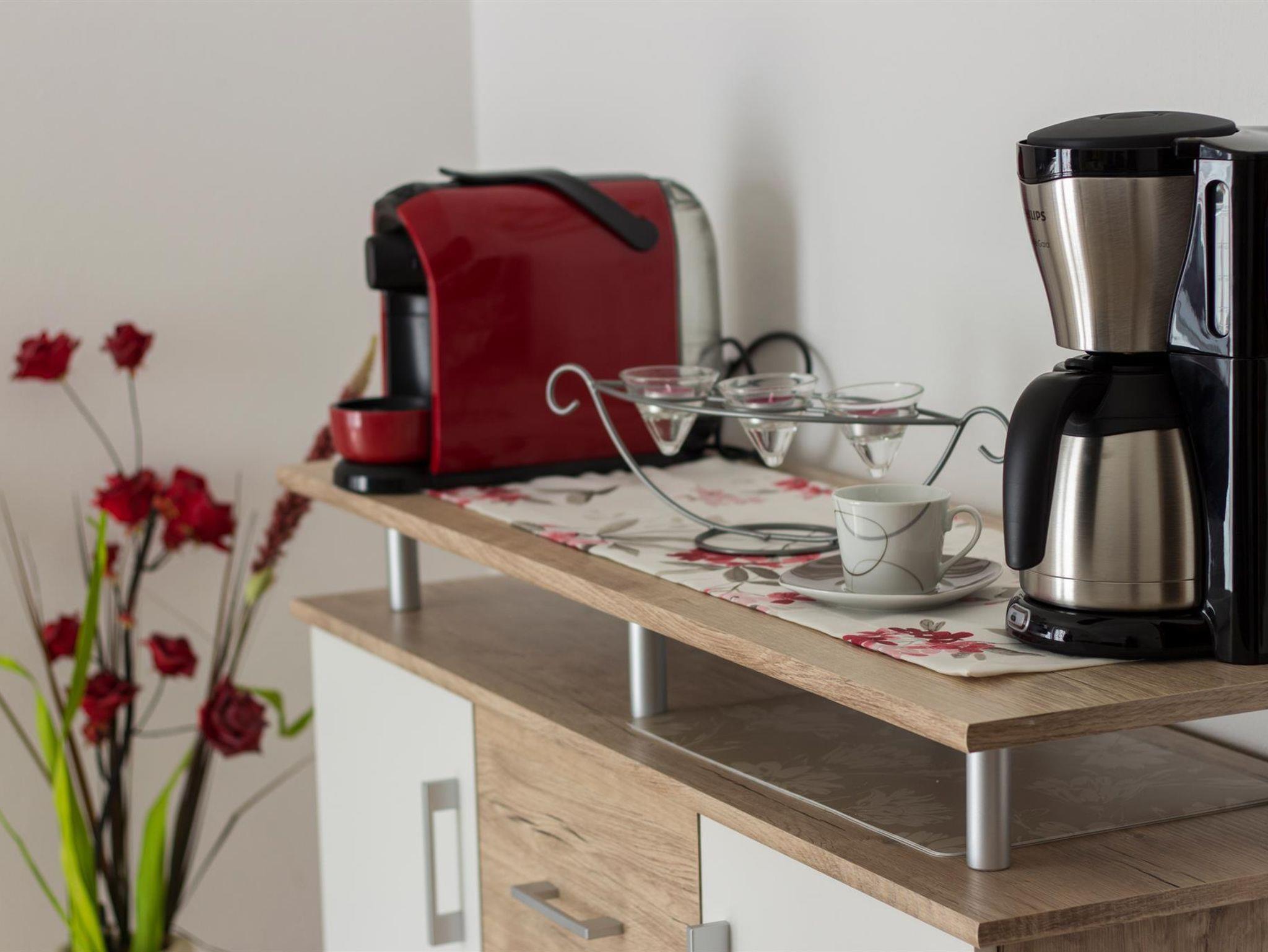 Die Küche ist gut ausgestattet, mit Ceranfeld, Backofen, Geschirrspüler, Kaffeemaschine und sämtliche Küchenutensilien. Es gibt einen großzügigen Essbereich, wo man auch gemütlich zusammen sitzen kann. Kabel TV und Flachbildschirm sind ebenfalls vorhanden.