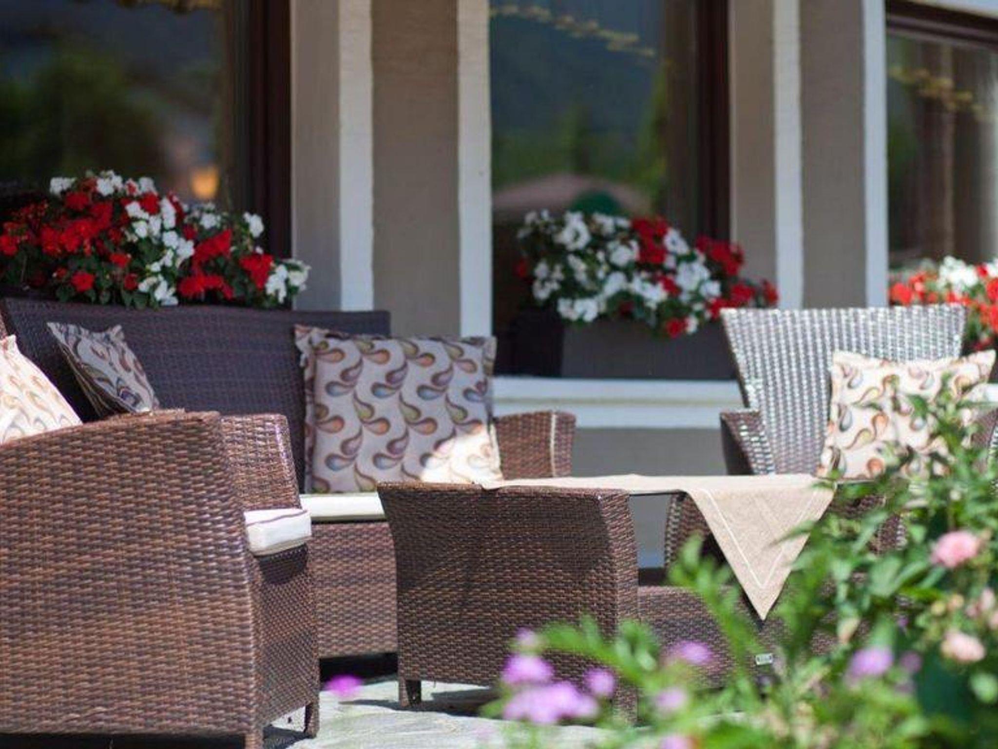 gemütliche Sonnenterrasse mit Blick auf den Faistenauer Dorfplatz