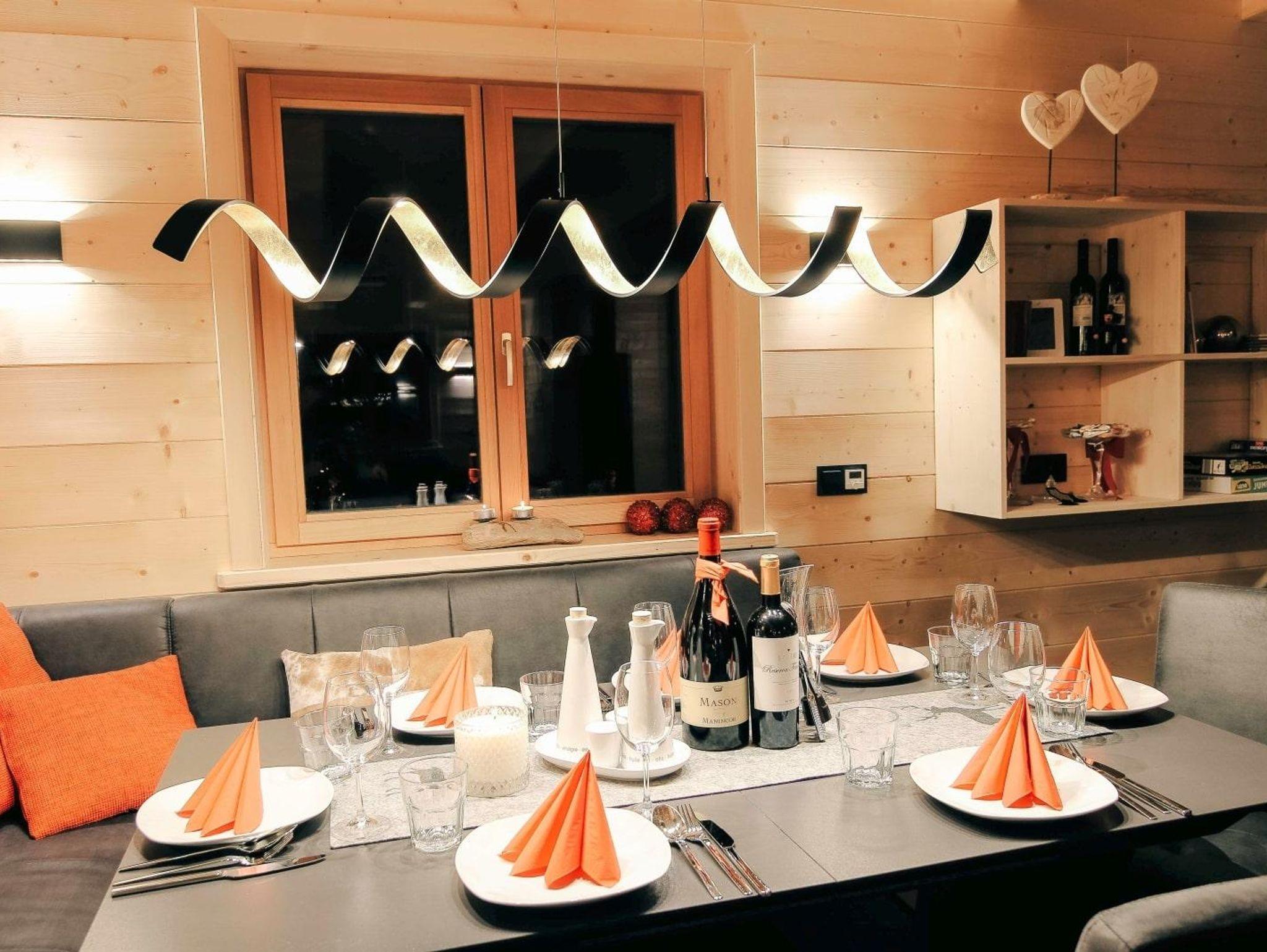 Das Wohnzimmer mit der offenen Küche und Theke lädt zum Verweilen ein. Während die Kinder nach einem aufregendem Skitag Netflix schauen, kochen Sie gemütlich in der Küche und lassen dabei den Blick über das Kaminfeuer und die Gipfel streifen. Alle Schlafzimmer verfügen ebenfalls über Sitzgelegenheiten und Sat-/Smart-TVs sowie 2 über einen Balkon. Auf der großen Süd-Panoramaterrasse finden Sie alles, was Sie für den perfekten Urlaub in den Bergen brauchen – Außenkamingrill, Hotpot und Gartenmöbel. Alle Extras vom WLAN bis hin Waschmaschine sind selbstverständlich inkludiert.