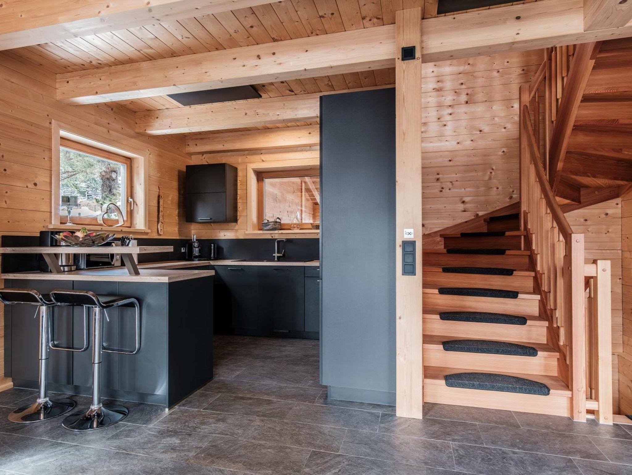 Sie fahren über eine ruhige Anliegerstraße in die Garage mit Elektroauto-Ladestation und Ski-Stadl. Über eine Treppe gelangen Sie zu den Chalets und den Wanderwegen bzw. der Skipiste/Loipe, die direkt oberhalb der Chalets beginnen. Im Sommer können die oberen Chalets auch direkt mit dem Auto angefahren werden.