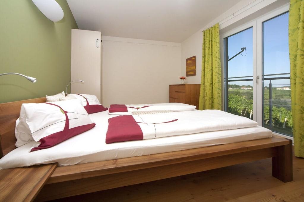 "Das Nussberg", et moderne feriehus i hjertet af vores vingård, tilbyder ideel komfort for 2 voksne (maks. 5 personer). Vi værdsætter kvalitet: smukt tømrerarbejde, fine trægulve, en privat sauna i feriehuset med udsigt over vinmarken. En rummelig terrasse med siddepladser og liggestole fungerer som udendørs opholdsstue. Morgenmad er tilgængelig på vores gårdferiehus, Kürbishof i landsbyen! Regional gårdbutik på Kürbishof: gårdens egen græskarkerneolie, snackfrø, regionale juicer (fersken, jordbær, æble, hyldebær, gulerod) og kvalitetsvine, marmelade, honningspecialiteter, urteprodukter, fin spiritus, gaveartikler osv.