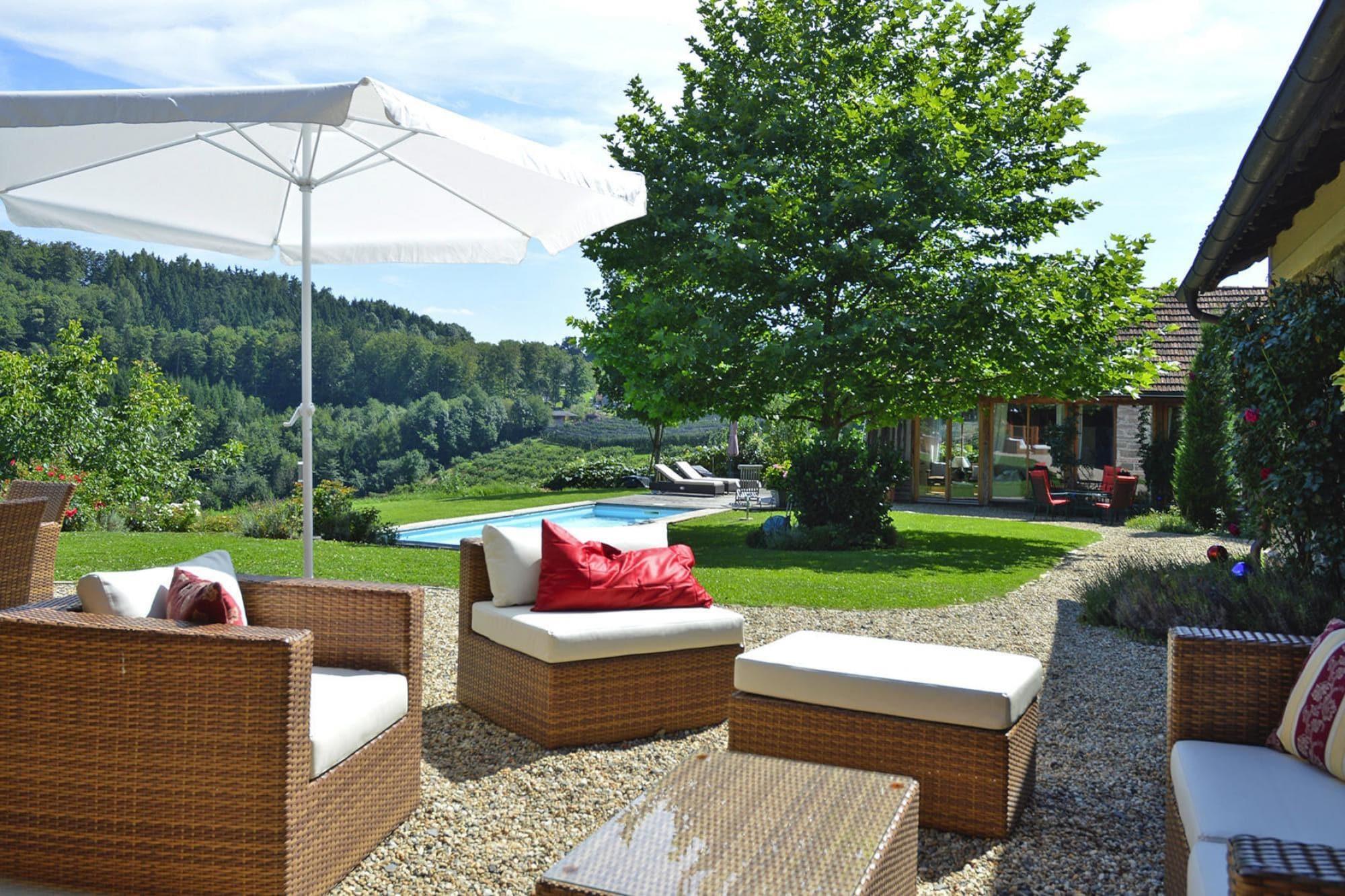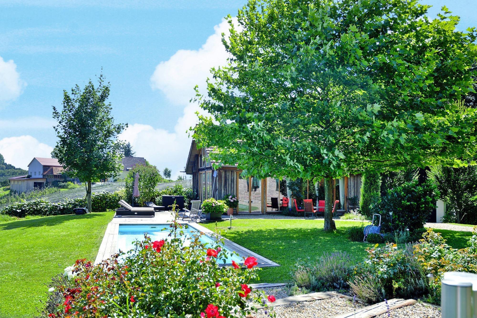 Den 250 år gamle hovedbygning (175 m²) er blevet grundigt revitaliseret. Dens gamle charme er blevet bevaret og er blevet kærligt møbleret med moderne teknologi og udsøgte antikviteter. To soveværelser med en-suite badeværelser (hvoraf det ene er åbent integreret, hver med badekar, bruser, toilet, hårtørrer, badekåber) kan komfortabelt rumme 4 personer. Den rummelige stue med pejs (satellit-tv, musikanlæg, bibliotek) er åben på 2 sider til terrassen og haven. Det fuldt udstyrede køkken og bryggers (vaskemaskine og tørretumbler) er åbne for hinanden. Endvidere indgangsparti og gæstetoilet.Det 75 kvadratmeter store, hemslignende udhus, "Presshaus", er helt i træ og byder på en smuk panoramaudsigt til to sider gennem de høje vinduer. Det store gavlvindue giver natudsigt til stjernehimlen i det sydlige Steiermark Midtpunktet er en cirka hundrede år gammel vinpresse, på hvis pressegulv en dobbeltseng er smukt integreret Med endnu et badeværelse med regn bruser, toilet og Der er nok plads til en anden 2 people.A Daikin klimaanlæg giver køling om sommeren og fungerer som opvarmning i winter.A sovesofa plads til 1 ekstra barnets tarv hyggelig have med swimmingpool ( 9 x 3 m, biologisk salt rengøring) og solen terrasse forbinder de to bygninger og skaber en fredelig atmosfære. Detaljer: Forbrugsbaserede energiomkostninger, sengelinned, håndklæder, slutrengøring, WiFi-velkomstpakke, byskat Aktiviteter i nærheden: Det maleriske bakkede landskab af vulkansk oprindelse med dets skove, vinmarker og frugtplantager er ideelt til lange gåture. Oplev de mange paladser og slotte langs Schlösserstraße, som betragtes som udfordrende vidner fra en svunden tid. Flere golfbaner såsom Traminergolf Klöch (ca. 20 km) eller Thermengolf Loipe