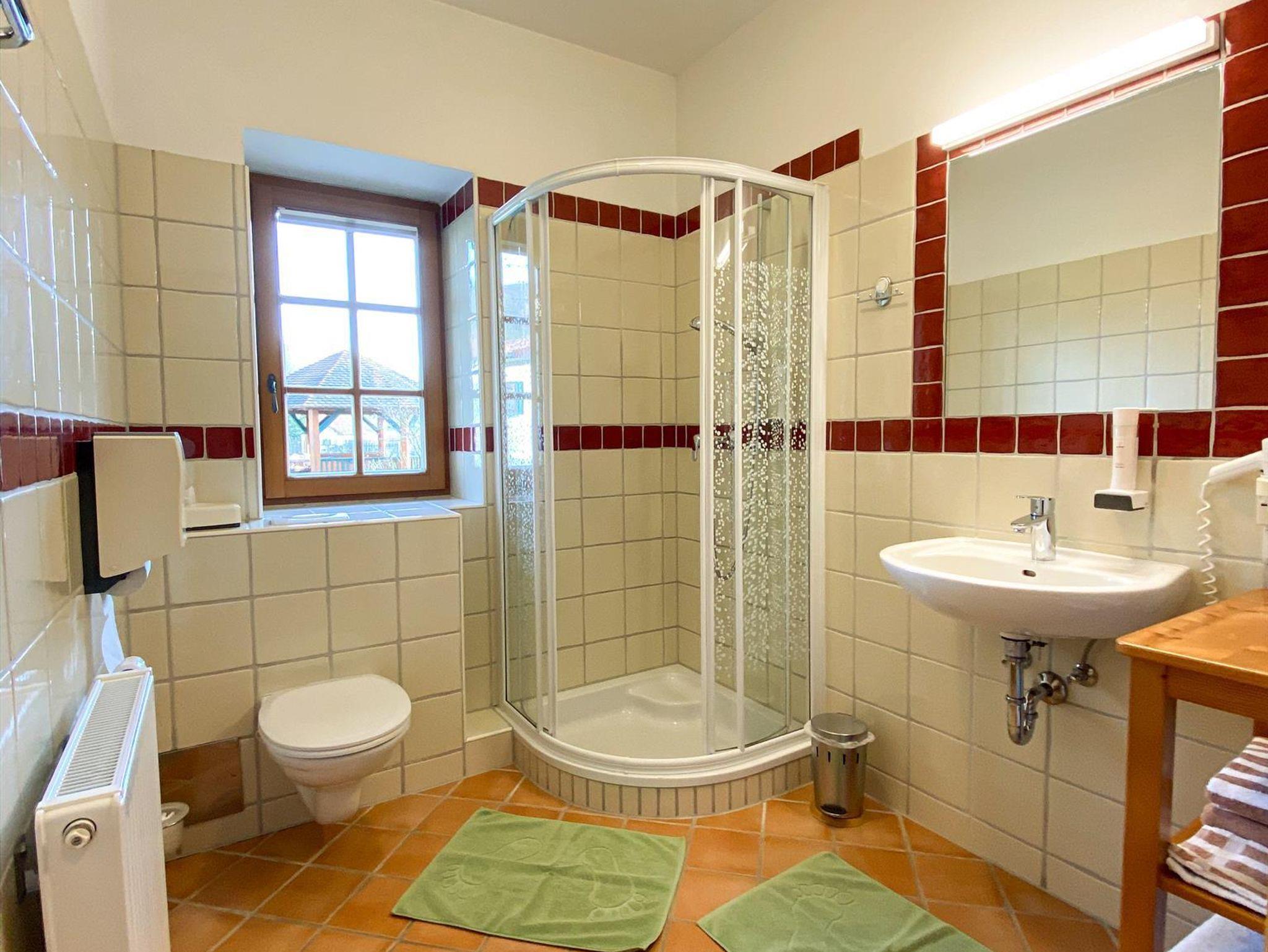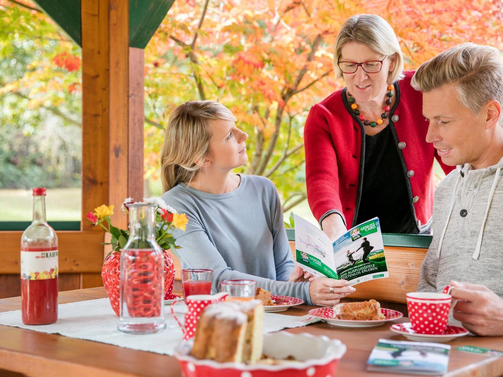 Zum weiteren Angebot zählen ein Frühstücksraum mit Getränkekühlschrank, eine Produktecke mit regionalen Produkten, sowie eine Sauna mit Entspannungsraum. Im großen Garten mit Pavillon, Spielplatz, Hasen und Schafe, Gokarts, Trettraktor, Fußballtor, Tischtennistisch, usw. können sich Kinder so richtig austoben.