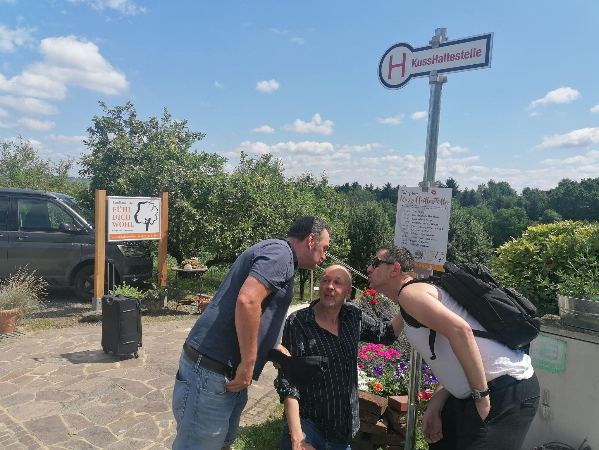Unser beliebter Fotopoint : 1.und einzige (?) KUSSHALTESTELLE vor dem Haus
