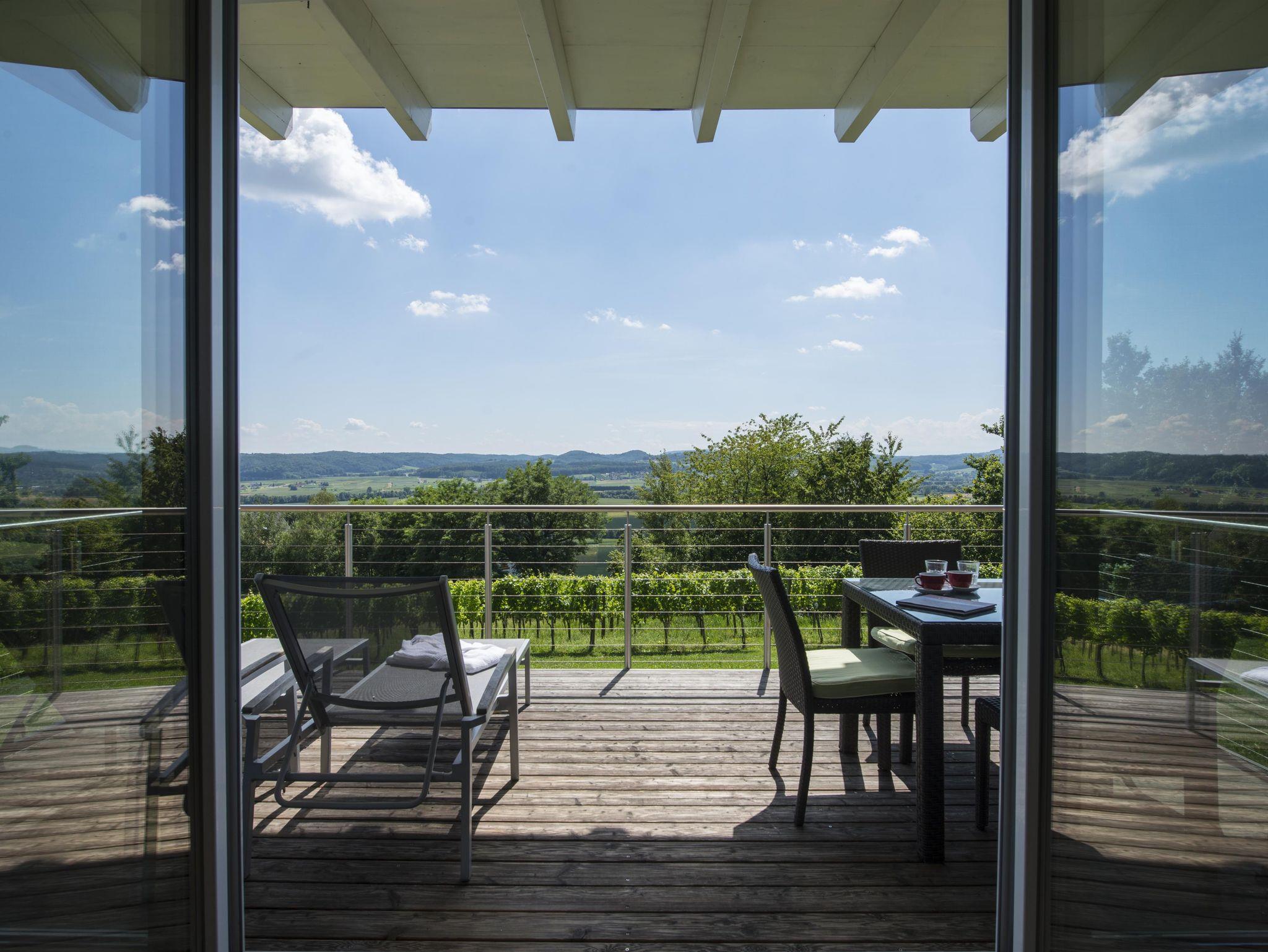 „Das Nussberg“, 60m² das moderne Weingartenhaus und „das Weinberg“, 80m² das traditionelle Kellerstöckl sind umgeben von Weinstöcken und befinden sich in absoluter Ruhelage. Atemberaubend ist der Ausblick auf den gegenüberliegenden Weinberg, zur Riegersburg und ins breite Raabtal mit seinen Kürbis- und Mais- und Getreideäckern.