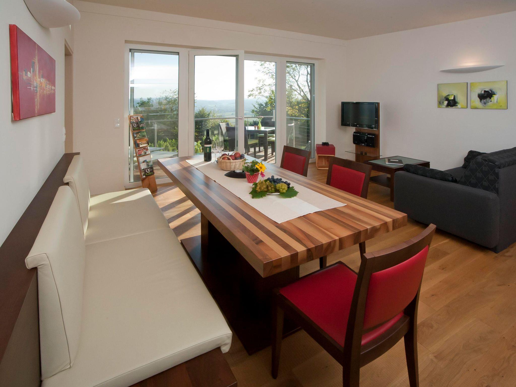 „Das Nussberg“ das moderne Weingartenhaus mit wunderbarem Aus- und Weitblick: Vollholzmöbel vom Tischlermeister, das hochwertige tueri Lebensenergiebett in Nussholz, Dielenböden in Eiche, gut ausgestattete Kochnische, grosser, heller gemütlicher Wohnraum mit schwebender Weingartenterrasse, eigene Sauna, Waschmaschine, Saeco Espressomaschine, uvm. Weinpatenschaft „Sauvignon blanc Nussberg“ für alle die gerne einmal Weinbauer sein möchten!
