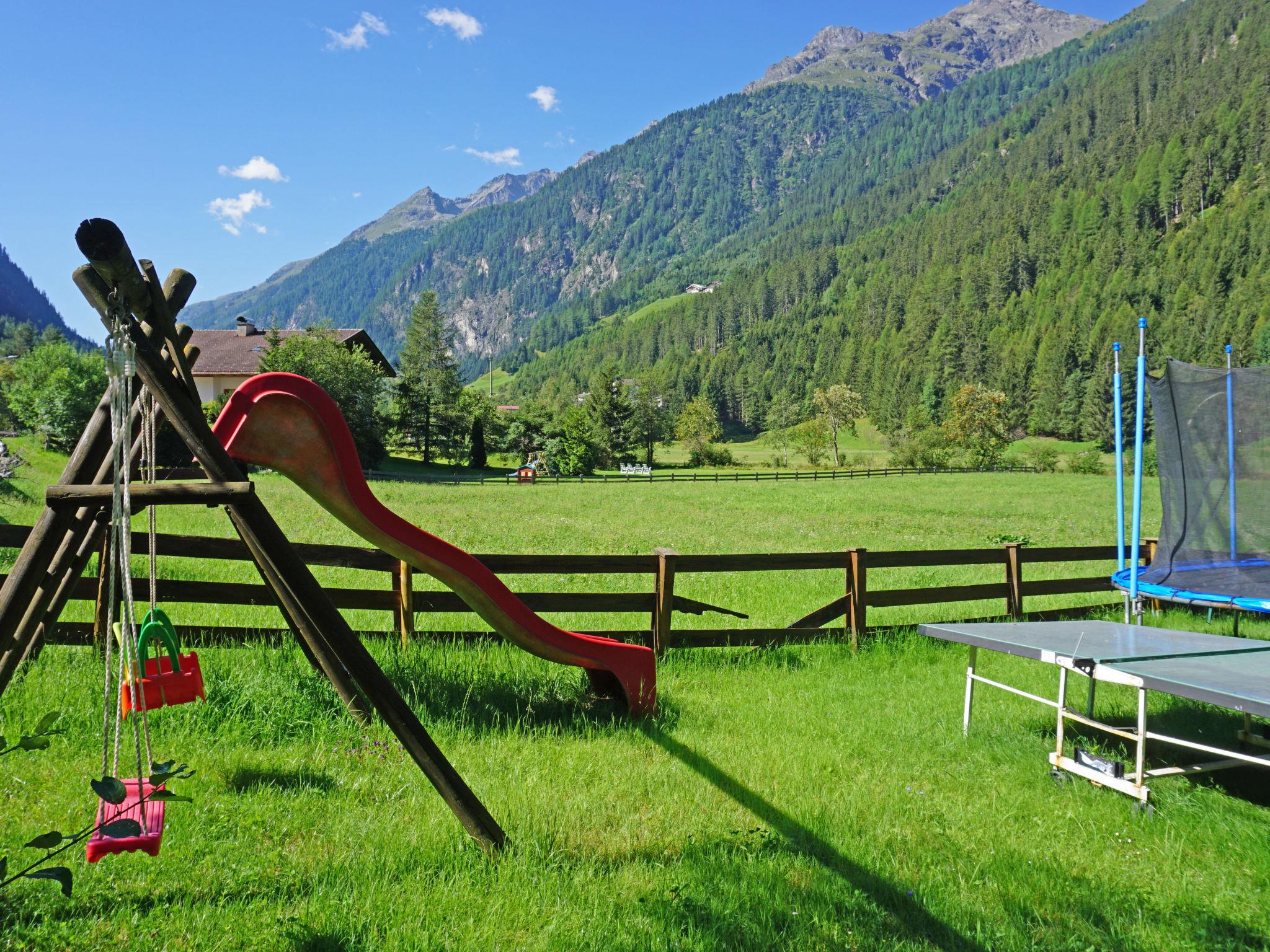 Feichten im Kaunertal: Large apartment block "Sonnenhof", detached. In the resort, on a main road. For shared use: children's playground. In the house: reception, breakfast room, lounge, WiFi, infrared sauna, trampoline, storage room for bicycles, storage room for skis, central heating system, ski boot dryer. Linen change (suppl. charge extra). Towel change (suppl. charge extra). Breakfast on request (extra). Motor access to the house. Parking at the house. E-charging station. Supermarket 100 m, restaurant 50 m, bus stop 10 m, indoor swimming pool 50 m. Skisport facilities 10 km, ski rental 100 m, ski bus stop 10 m, ski school, sled run 200 m, cross country ski track 20 m. Well-known ski regions can easily be reached: Kaunertaler Gletscher 21 km, Serfaus-Fiss 14 km, Fendels 10 km. Hiking paths: Naturpark Kaunergrat, Verpeil, Klettersteig Verpelischlucht. Please note: ski bus (free of charge). Free ski bus service to the ski region Fendels (Ried) und Kaunertaler Gletscher. Reduced admission (50% in summer, free in winter) to the "Quellalpin" indoor pool (50m) and other discounts with the "Kaunertal Card" included.