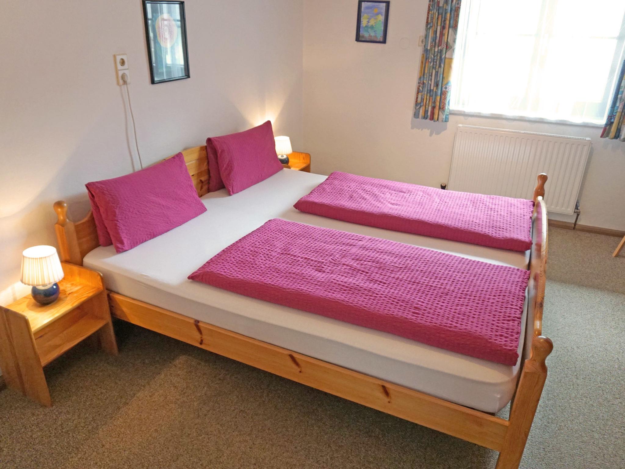 4-room apartment 80 m2 on 1st floor. Spacious, cosy furnishings: entrance hall. 2 double bedrooms. 1 room with 1 double bed (140 cm), cable TV (flat screen). Kitchen-/living room (oven, dishwasher, 4 ceramic glass hob hotplates, microwave, electric coffee machine) with dining nook and radio. Exit to the balcony. Bath/WC. Large balcony, south facing position and west facing position. Balcony furniture. Marvellous view of the mountains and the countryside. Facilities: hair dryer. Internet (WiFi, free). Please note: non-smokers only.