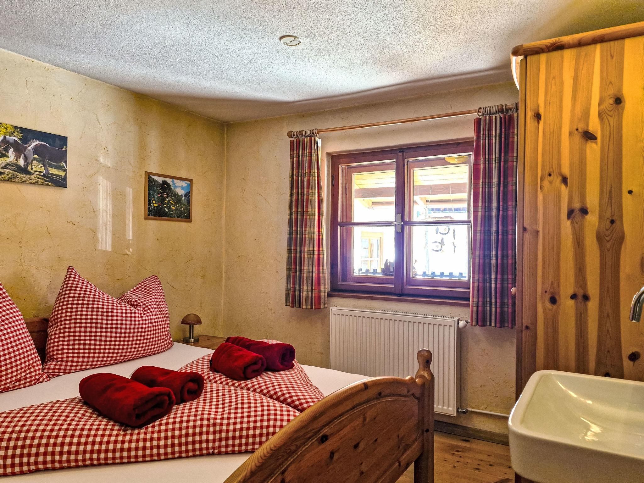 "Haflingerhof Almrose", 4-room apartment 60 m2, on the ground floor, south facing position. Rustic and wooden furniture furnishings: living room with open-hearth fireplace and satellite TV (flat screen). 1 double bedroom with hand-basin. 1 double bedroom. Kitchen-/living room (oven, dishwasher, 4 ceramic glass hob hotplates, toaster, kettle, microwave, electric coffee machine) with dining nook. Shower, sep. WC. Heating. Patio. Terrace furniture. Facilities: hair dryer. Internet (WiFi, free). Please note: non-smokers only. Maximum 1 pet/ dog allowed.