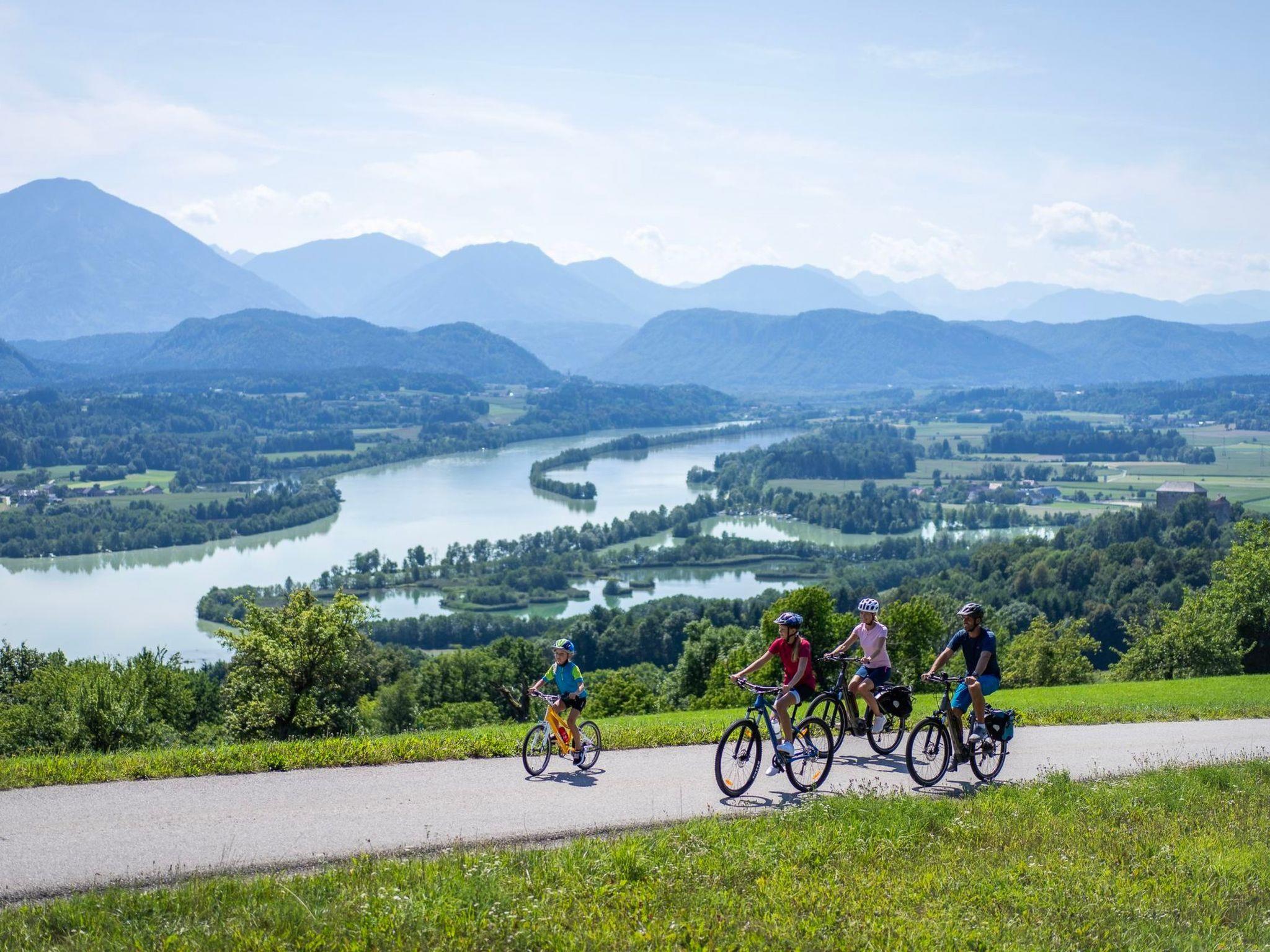 The area surrounding the holiday home is a paradise for nature and sports lovers. The famous Carinthian lakes such as Lake Wörthersee, Lake Millstätter See and Lake Ossiacher See are just a few kilometres away and offer excellent conditions for swimming, sailing and water sports. The idyllic swimming pond right next to the holiday village invites you to refresh yourself. For cyclists, the Drau cycle path R1 leads past, while the surrounding mountains and forests invite you to go hiking and mountain biking. The nearby towns of Klagenfurt and Villach offer cultural and culinary experiences with their traditional dishes.