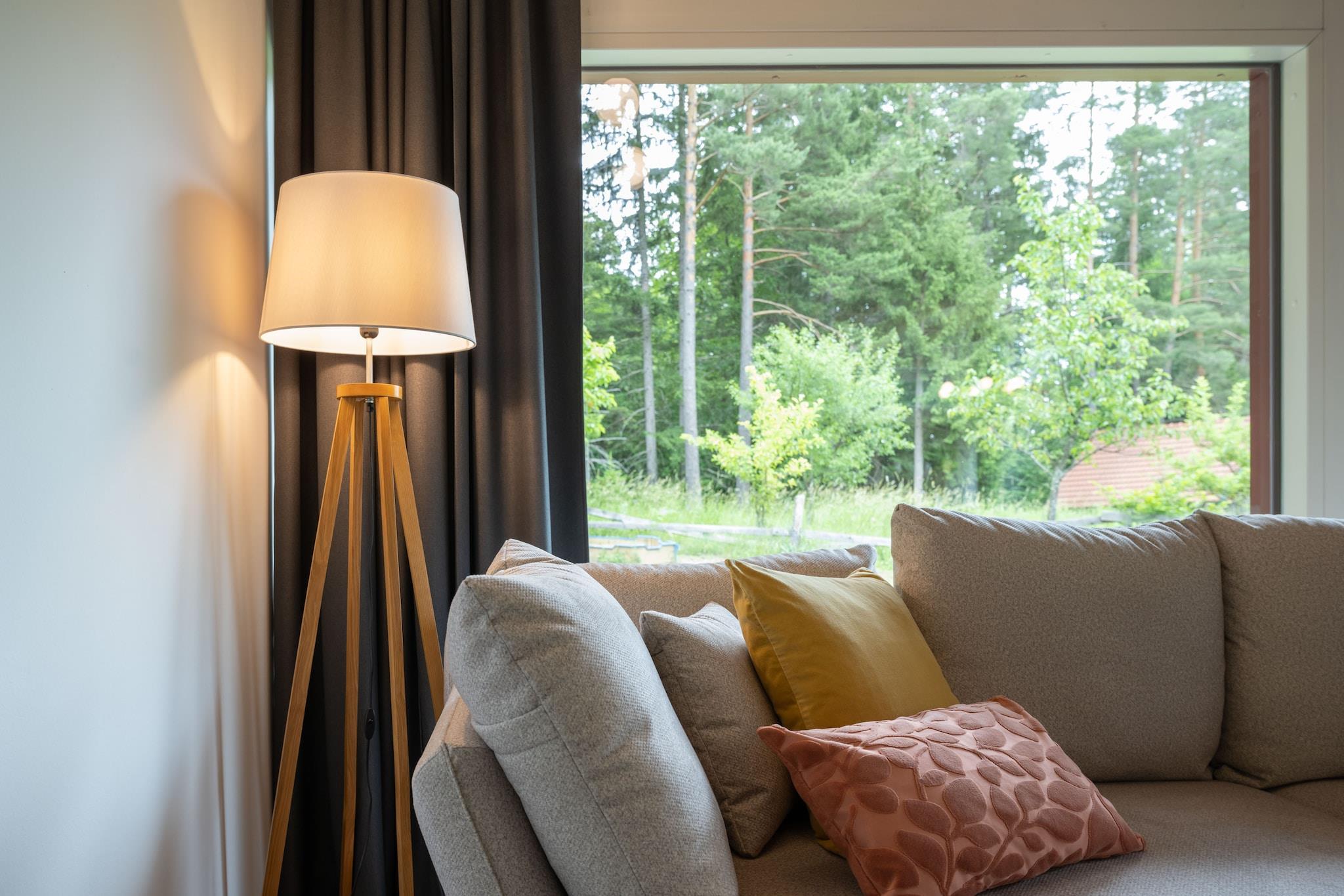Stueetage: (loungerum(CD-afspiller, stereoanlæg, bruser, infrarød sauna, håndvask, toilet), pulterkammer(håndvask, vaskemaskine, hundekurv, hundeskål)) På 1. etage: (Stue(Fjernsyn), køkken-alrum(komfur(glaskeramisk), ovn, mikrobølgeovn, opvaskemaskine , køle-fryseskab), soveværelse(dobbeltseng), soveværelse(2x enkeltseng), badeværelse(bruser, 2x håndvask), terrasse(overdækket)) tørretumbler, vaskemaskine, terrasse, have, parkering, barneseng, barnestol