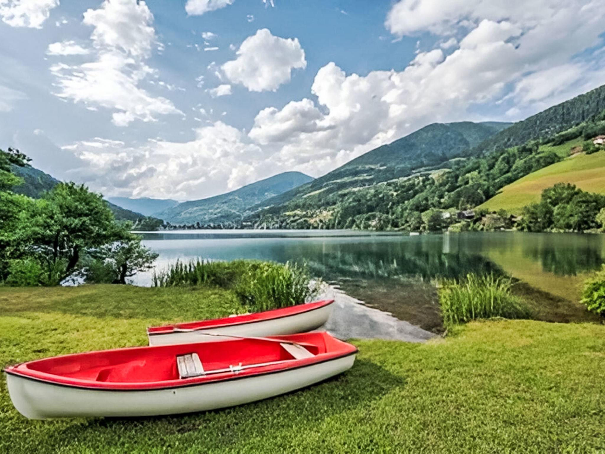 Semi-detached house "Brennsee", detached. 2 apartments in the property. In a sunny position, on the lake, direct access to the beach, in the countryside. For shared use: lawn for sunbathing 500 m2 (fenced). Table tennis, patio, terrace, garden furniture, barbecue, bathing place. In the house: storage room for bicycles. Rowing boat (on request), parking at the house. Shop 2 km, supermarket 4.5 km, restaurant 2 km, bakery 2 km, bus stop "Erlach" 90 m, railway station "Villach St. Ruprecht" 19 km, bathing lake "Brennsee". Golf course (18 hole) 17 km, tennis 2 km, chair lift 11 km, slopes 11 km. Well-known ski regions can easily be reached: Bad Kleinkirchheim 11 km. Well-known lakes can easily be reached: Brennsee, Afritzer See 2 km, Millstättersee 12 km. Note: Pets are only allowed if both bungalows on the property are booked.