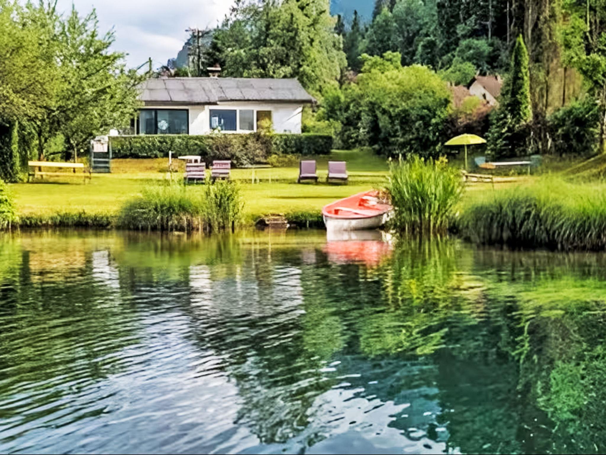 Semi-detached house "Brennsee", detached. 2 apartments in the property. In a sunny position, on the lake, direct access to the beach, in the countryside. For shared use: lawn for sunbathing 500 m2 (fenced). Table tennis, patio, terrace, garden furniture, barbecue, bathing place. In the house: storage room for bicycles. Rowing boat (on request), parking at the house. Shop 2 km, supermarket 4.5 km, restaurant 2 km, bakery 2 km, bus stop "Erlach" 90 m, railway station "Villach St. Ruprecht" 19 km, bathing lake "Brennsee". Golf course (18 hole) 17 km, tennis 2 km, chair lift 11 km, slopes 11 km. Well-known ski regions can easily be reached: Bad Kleinkirchheim 11 km. Well-known lakes can easily be reached: Brennsee, Afritzer See 2 km, Millstättersee 12 km. Note: Pets are only allowed if both bungalows on the property are booked.