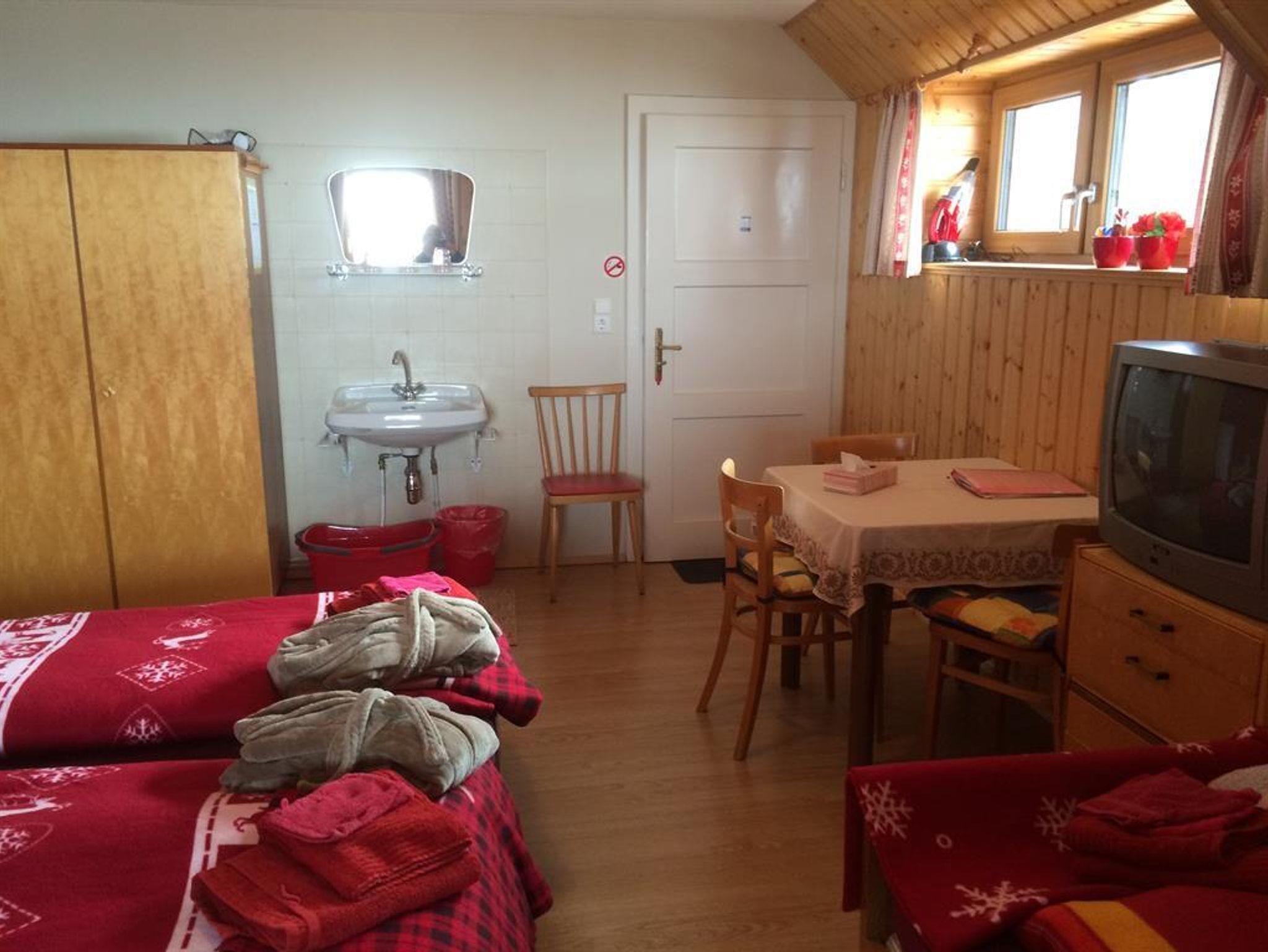 Das Familienzimmer Almrose ist ausgestattet mit einem Doppelbett und zwei Einzelbetten. Eigenes Badezimmer mit Dusche, Wc und Waschtisch, als auch ein eigenen kleine Küche mit Kühlschrank und Kaffee/Tee möglichkeit. Das Zimmer hat einen schönen Waldblick, wo mann morgens- wenn die Kühe nicht in der Wiese stehen- (Mai-Juni-Sept-Okt) die Rehe am Waldrand sieht. GRATIS WLAN. Kleine Mahlzeiten könnt Ihr in eigene Küche bereiten aber großes Kochen in der Gästeküche im ersten Stock. Kinderermäßigung nur möglich bei Belegung von mindestens 2 Erwachsenen. Kinder 0 bis 4 Jahre gratis. Von 5 bis 10 Jahre € 10,00.Von 11 bis 15 Jahre € 15,00. Dann Erwachsenpreis.