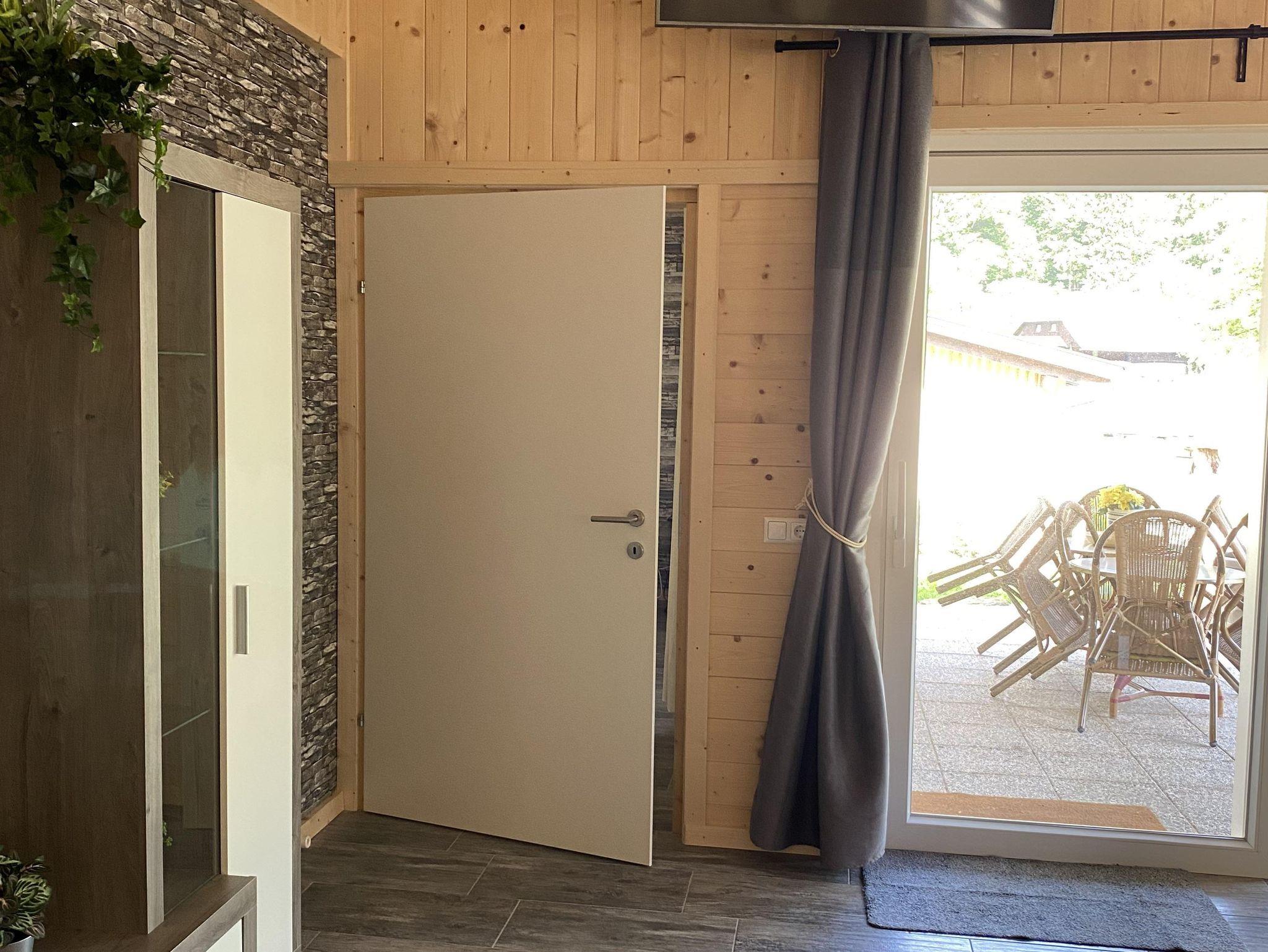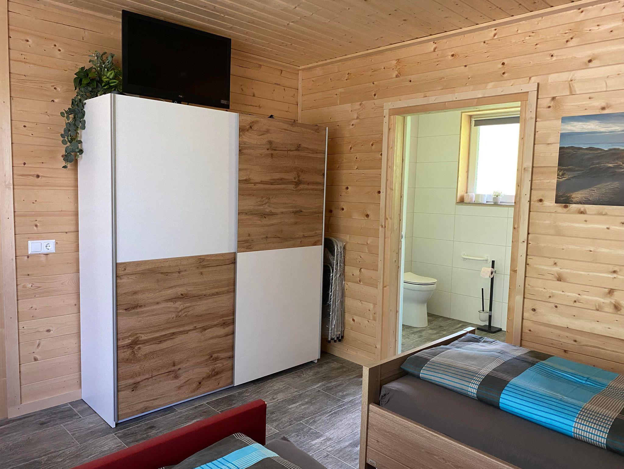 In Juni 2022 fertig gestellte behindertengerechte/barrierefreie Bungalows für Jedermann. Ob für Familien, Senioren oder Behinderte- sie sind für alle geeignet. Fischen im Rollstuhl möglich. Direkter Zugang zum Privatstrand mit Geländer, um in den See zu kommen. See ist nicht gleich tief, die ersten paar Meter sind seicht. Bungalow 1 bietet Platz für max. 8 Personen und Bungalow 2 und 3 sind beide geeignet für 6 Personen. Auch Gruppenferien sind möglich. Haus 2 und 3 können mit einander gekoppelt werden. Jeder Bungalow hat ein behindertengerechtes Badezimmer und Schlafzimmer. In Bungalow 1 gibt es noch 2 Doppelzimmer extra und in Bungalow 2 und 3 ist jeweils ein Doppelzimmer und ein kleineres Zimmer mit Stockbett vorhanden. Man kann mit Hoch-niederig Betten direkt auf die Terrasse fahren. Viel Platz zum Leben. Der Strand wird von alle Gäste benützt. Eislaufplatz vor der eigenen Haustür. Kurz gesagt - für Jedermann ist etwas dabei. Waschmachinebenützung nur auf Anfrage und gegen Gebühr möglich. In der Bungalow ist kein Waschmachine.