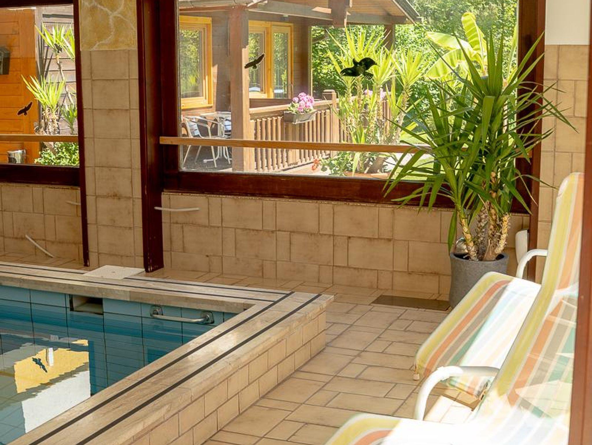 Entspannen sie sich in im eigenen Hallenbad (geöffnet v. 1. Mai bis 30. September) in der Sauna (geöffnet v. 1. April bis 30. September) oder auf unserer Terrasse und Liegewiese.