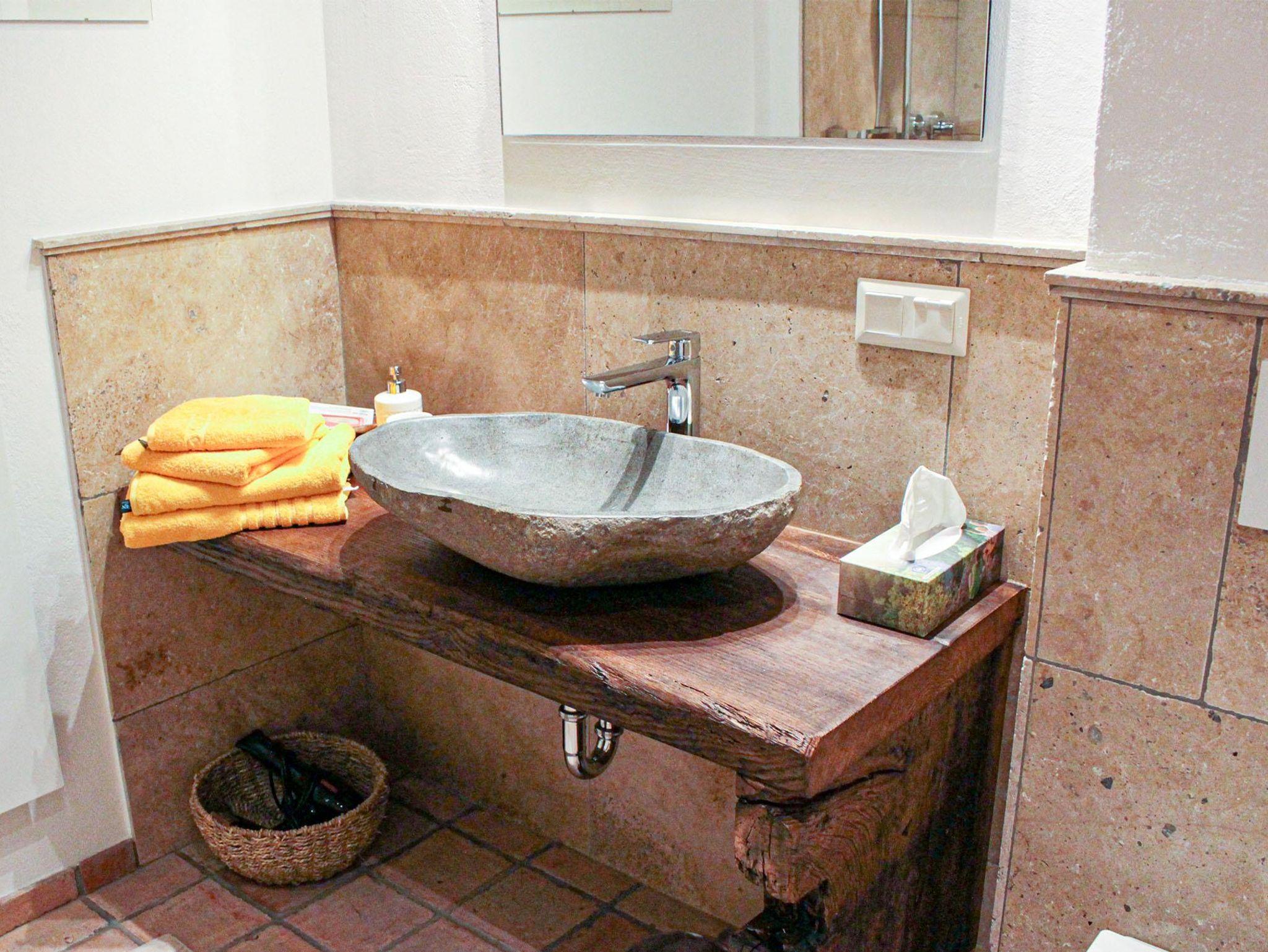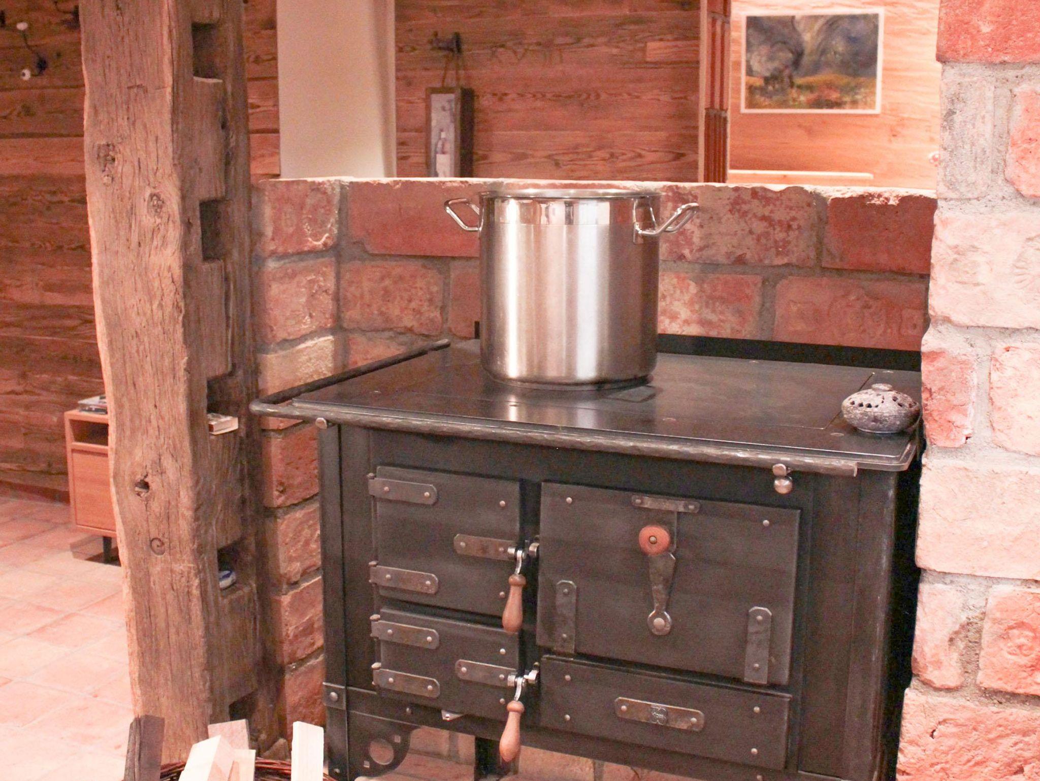 Der Holzherd sorgt für eine besonders gemütliche Atmosphäre, und wem das noch nicht genug ist, der kann sich in der Sauna noch einmal richtig aufwärmen.