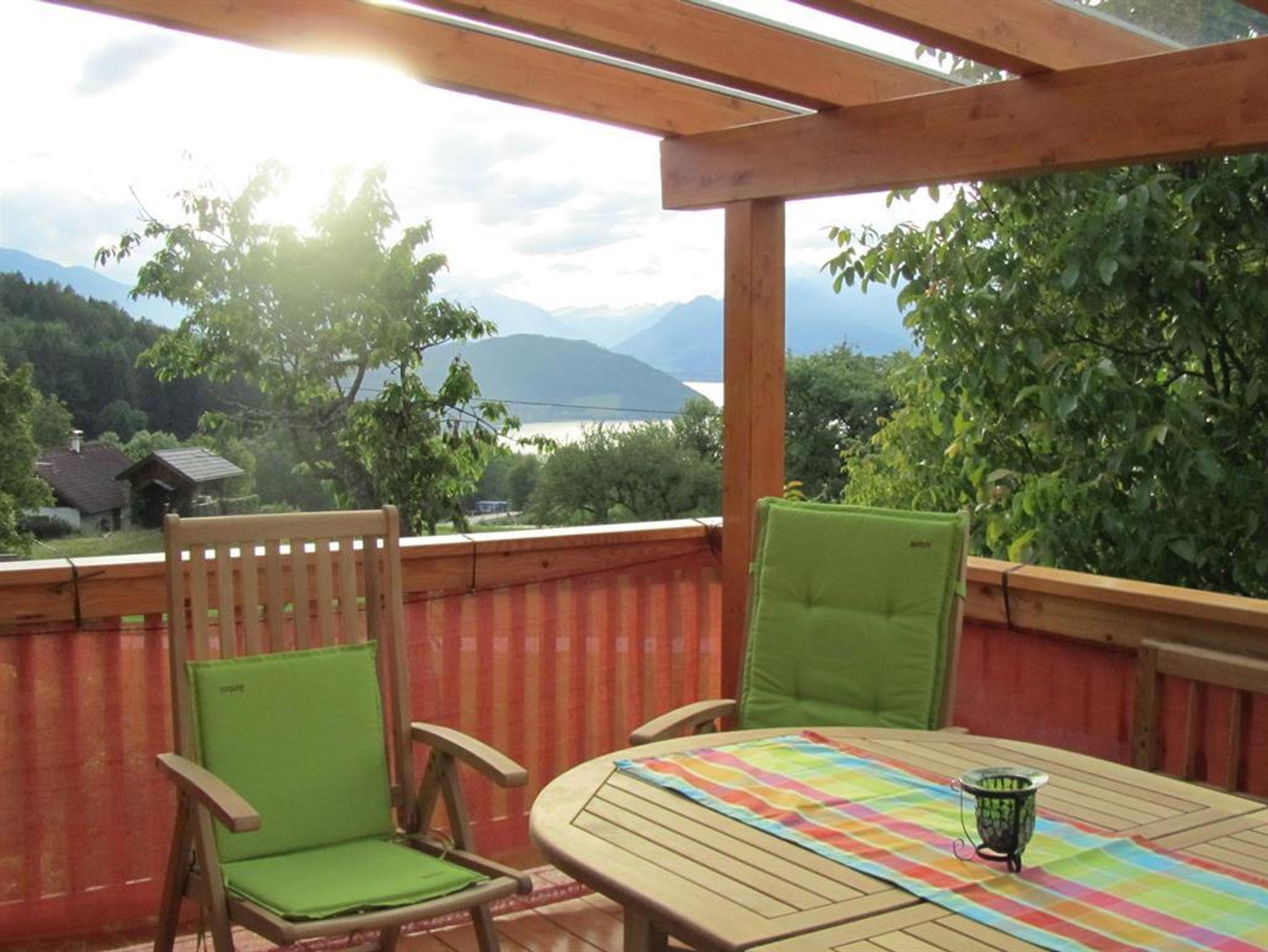 Wohnküche mit TV, Sat und ausziehbarer Couch, Große überdachte Terasse mit Blick zum See. Schlafzimmer bietet die Möglichkeit für ein zusätzliches Gitterbett oder ausziehbares Kinderbett. Freundlich, helles Bad mit Dusche und WC inkl. Bettwäsche und Handtücher