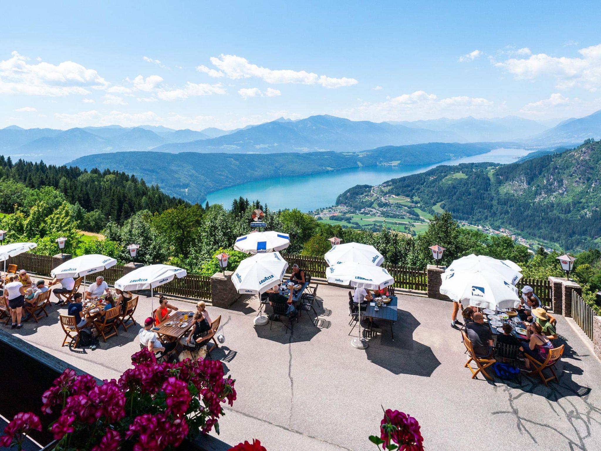 Mehr als einen Blick wert ist die große Sitzterrasse mit einzigartiger Fernsicht; auch im freundlich eingerichteten Speisesaal kommen alle Gäste auf ihre Kosten. Vor allem kulinarisch - von der Brettljaus'n mit Produkten aus der hauseigenen Landwirtschaft über regionale Schmankerln bis zu beliebten Spezialitäten.