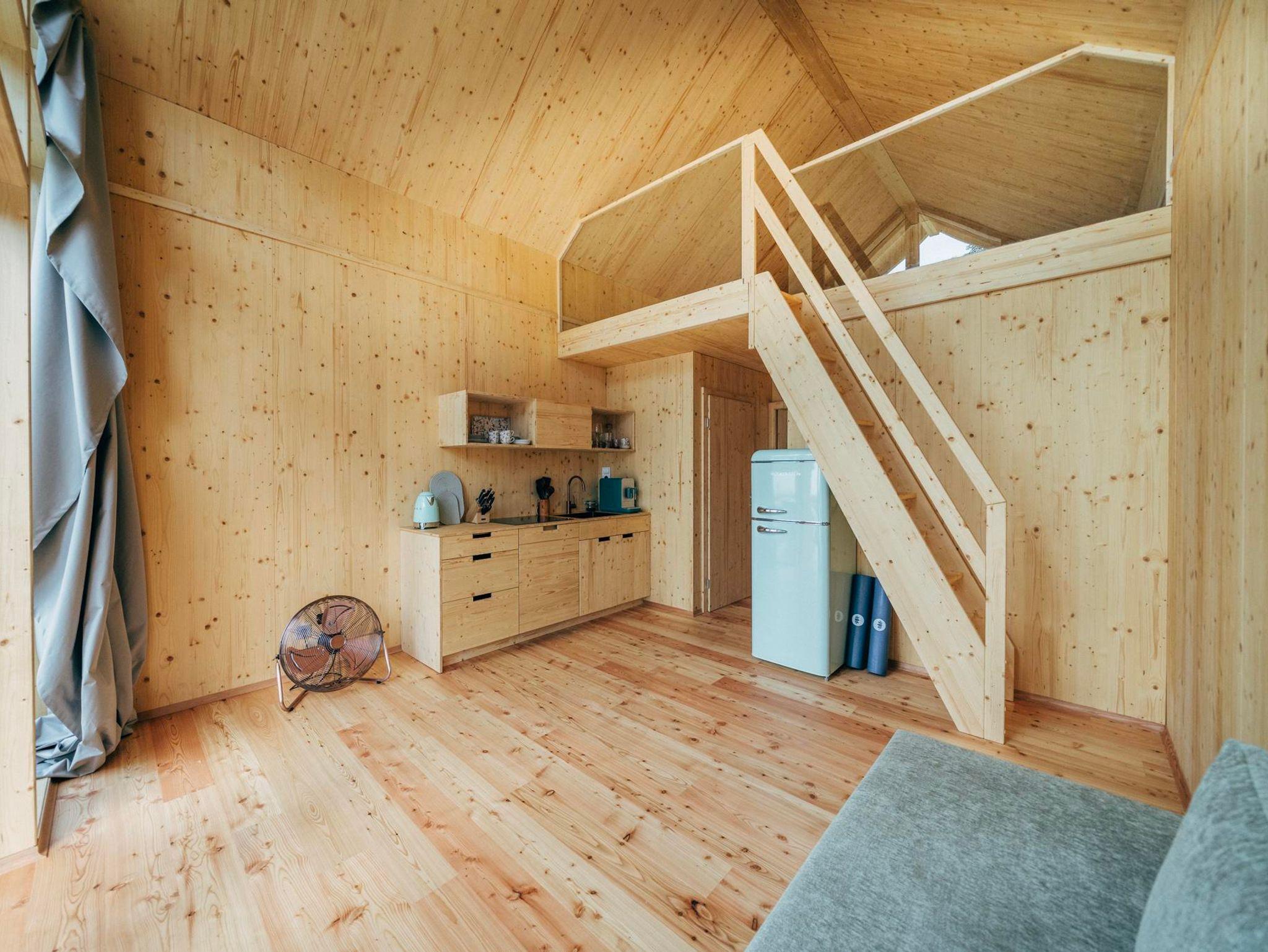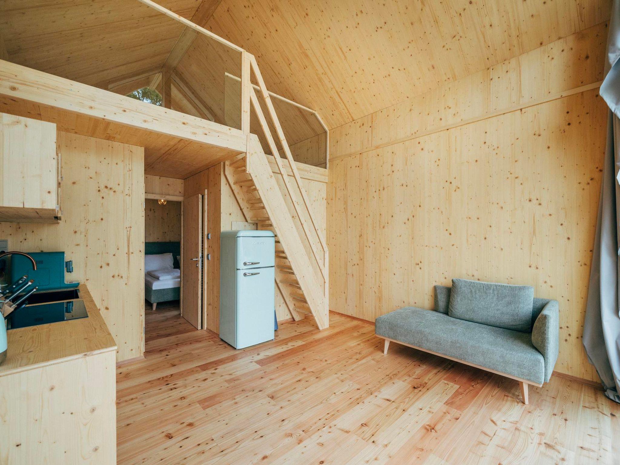 Sunny Celeste WOW View Sunny Celeste ist die größte aller Lodgen. Hier stehen 50 Quadratmeter auf zwei Ebenen für grenzenlose Freiheit und viel Raum, dazu 10 qm überdachte Terrasse. Im Erdgeschoß befindet sich die moderne Küche samt geräumigem Wohnraum, ein Schlafzimmer, Bad und separates WC. Über eine Treppe gelangen Sie in den 1. Stock, wo ein weiteres Schlafzimmer mit Traumblick durch die große Glasfront bezaubert. Wie alle Lodgen verfügt Sunny Celeste über eine großzügig möblierte Terrasse, High Speed Internet, einer tollen Ausstattung an Wäsche und Geschirr sowie 3 Yogamatten. Das moderne, zeitlos schöne Design aus Holz und Glas fügt sich wunderbar in die Natur von Döbriach ein.