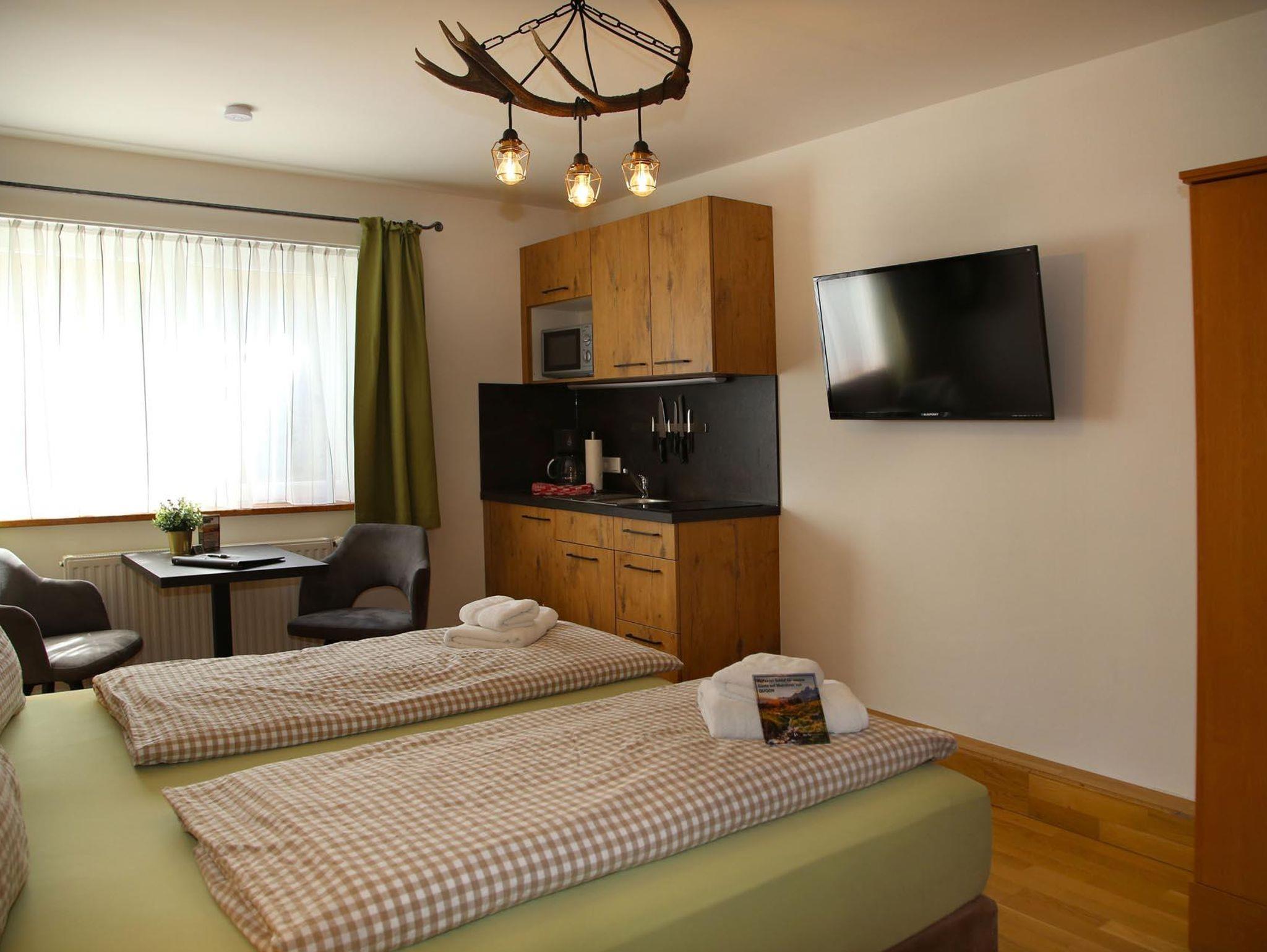 Im Untergeschoß befindet sich das Apartment Kraftplatz Schwarze Lacke mit zwei Schlafzimmer - jedes mit eigenem Badezimmer und gemütlicher Wohnküche - Platz genug für 6 Personen (ohne direkte Aussicht).