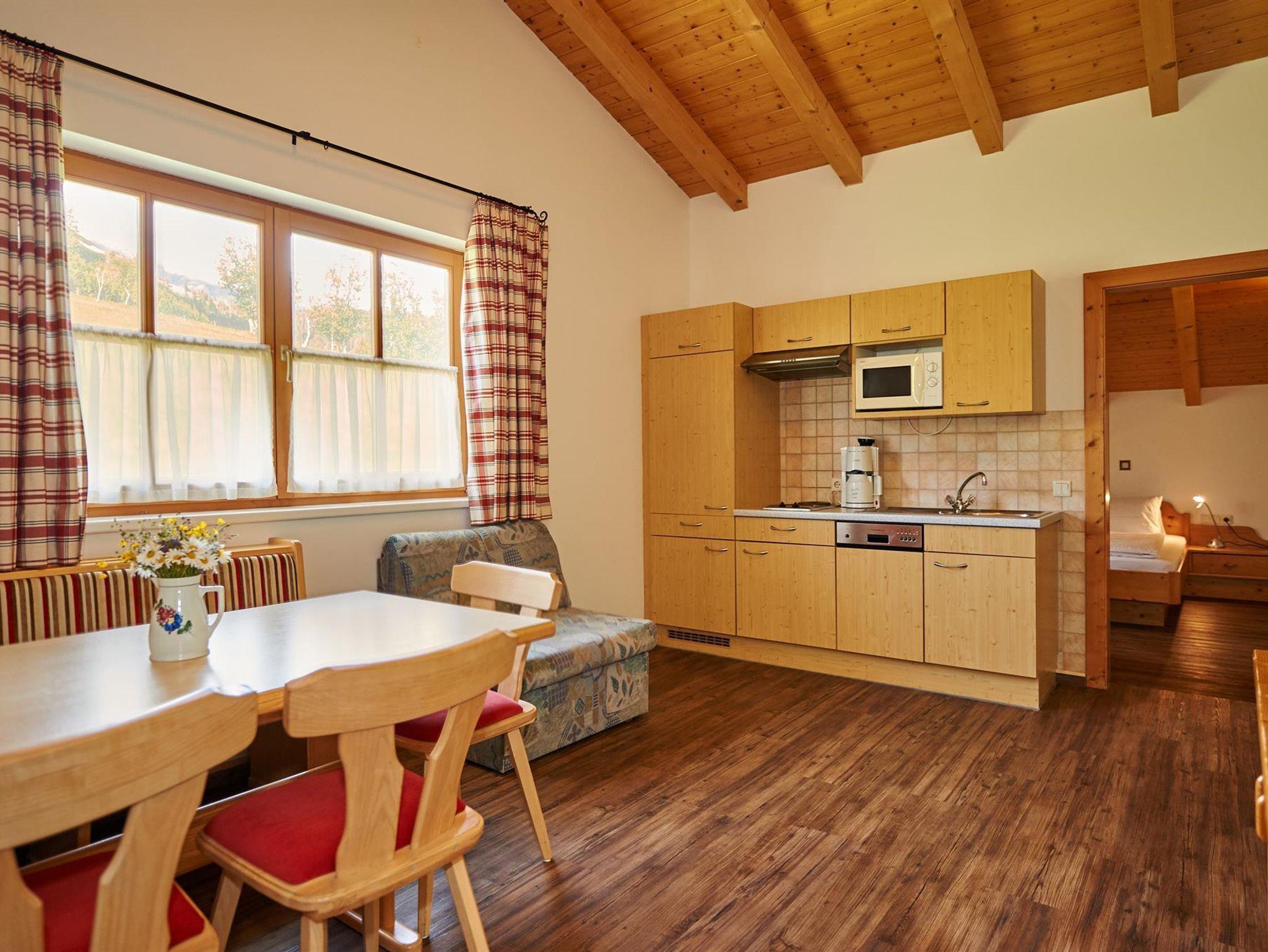 Komfortables Appartement (80 m²) mit schönen Blick auf Filzmoos, in ruhiger, sonniger Lage. In Holzbauweise und sehr gemütlich. Wellnessbereich im Hotel inklusive.