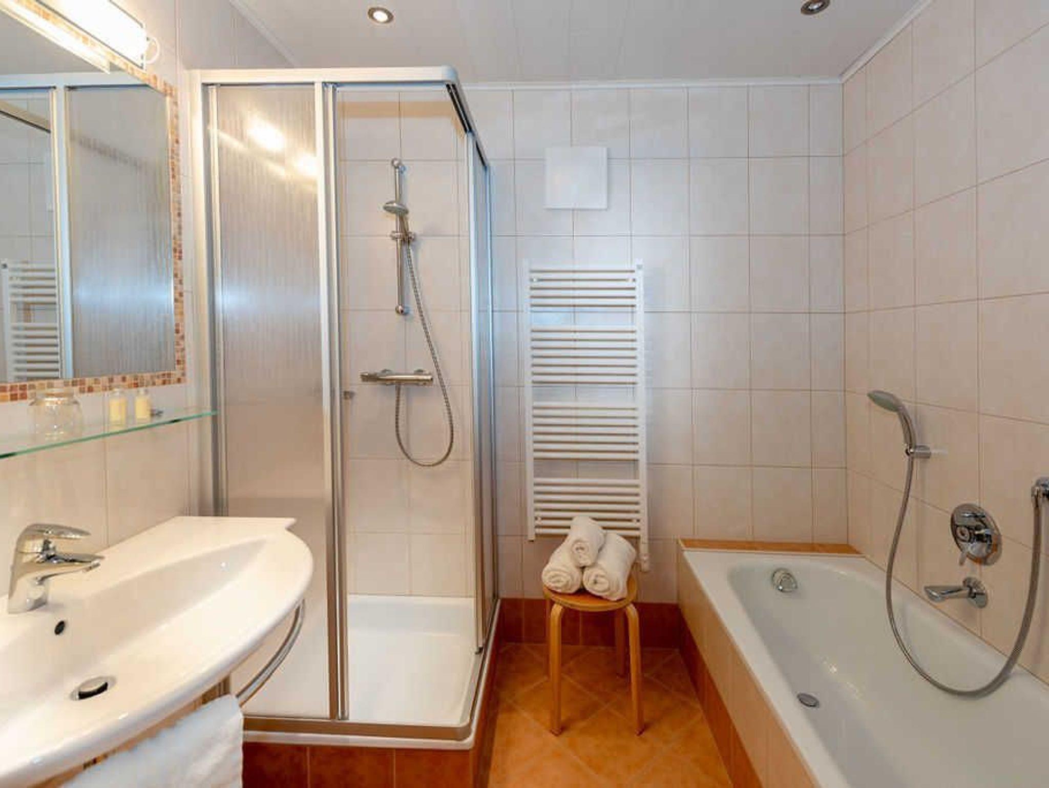 Großzügige, helle Räume und Salzburger Gemütlichkeit mit allem Komfort für die gesamte Familie. Das Appartement verfügt über eine eigene finnische Fichtensauna sowie ein schönes Wohn/Esszimmer mit Eckbank und Couch, einer separaten voll eingerichteten Küche (Geschirrspüler, Mikrowelle, Backrohr ...), separates, helles Schlafzimmer, Dusche/Bad, WC (separat), Vorraum, Farb-TV (Flat-TV), W-Lan, Radio, Telefon, Safe und südseitigen Balkon. Der Preis versteht sich inkl. Bett- und Tischwäsche sowie Handtücher, Badetücher und Bademäntel.