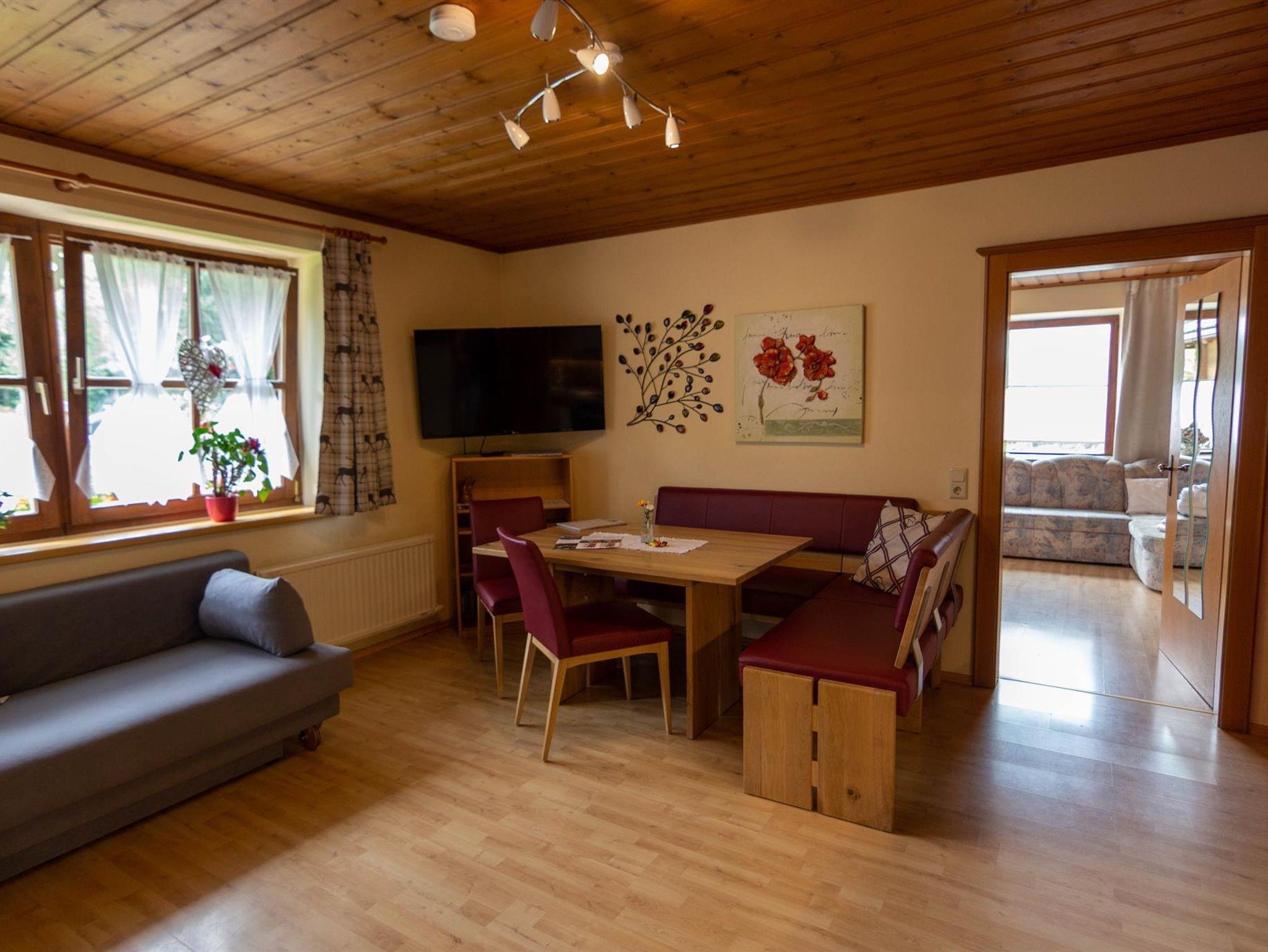 Großes, ruhiges Appartement im Parterre, Rollstuhl gerecht, 3 Zimmer, Liege u. Spielwiese, beheizter Außenpool (saisonal), Skilift u. Loipennähe, Haustiere erlaubt, Garage.