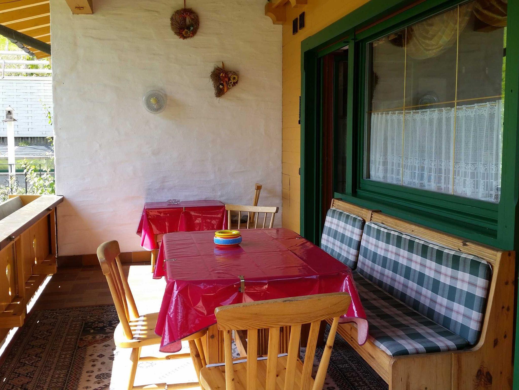 - Großer Balkon mit Holzbank, großem Tisch und Stühlen sowie sehr schöner Panoramasicht
