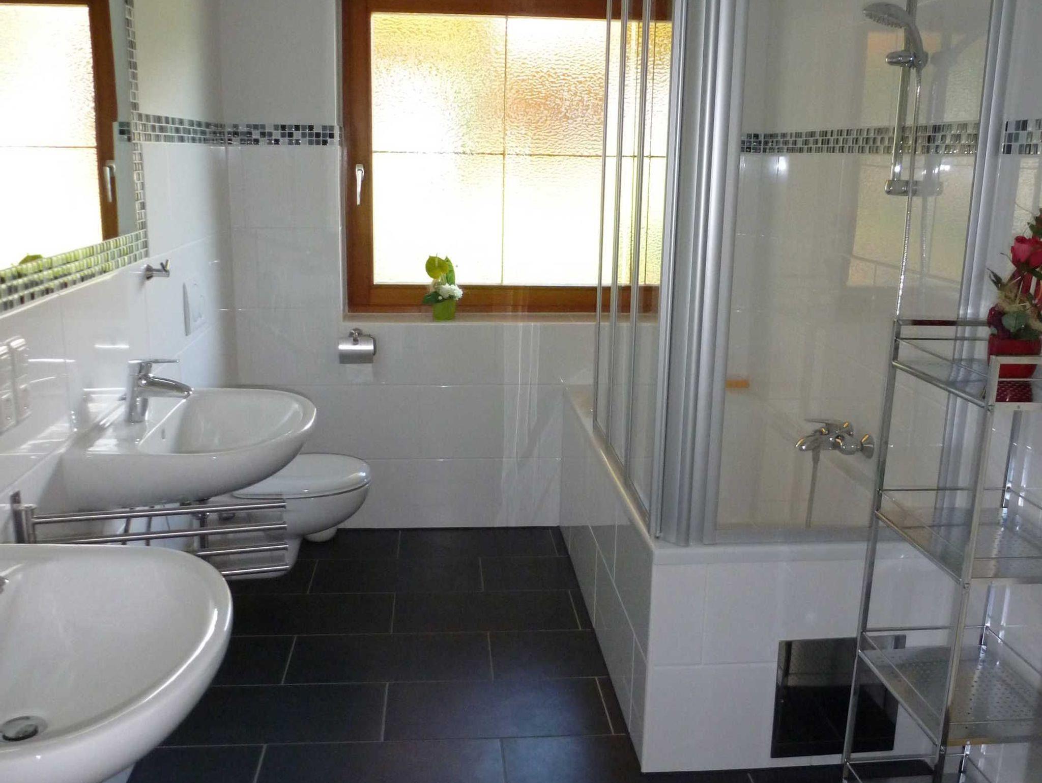 - Bad mit Badewanne, WC und 2 Waschbecken